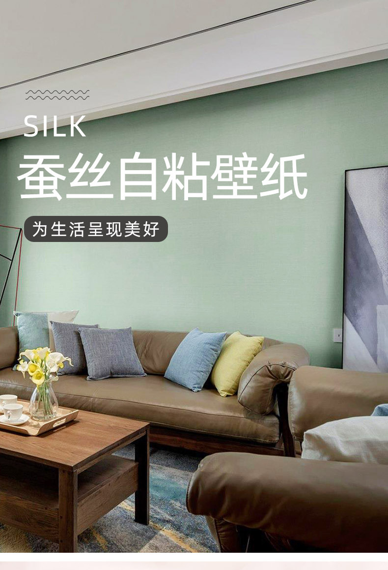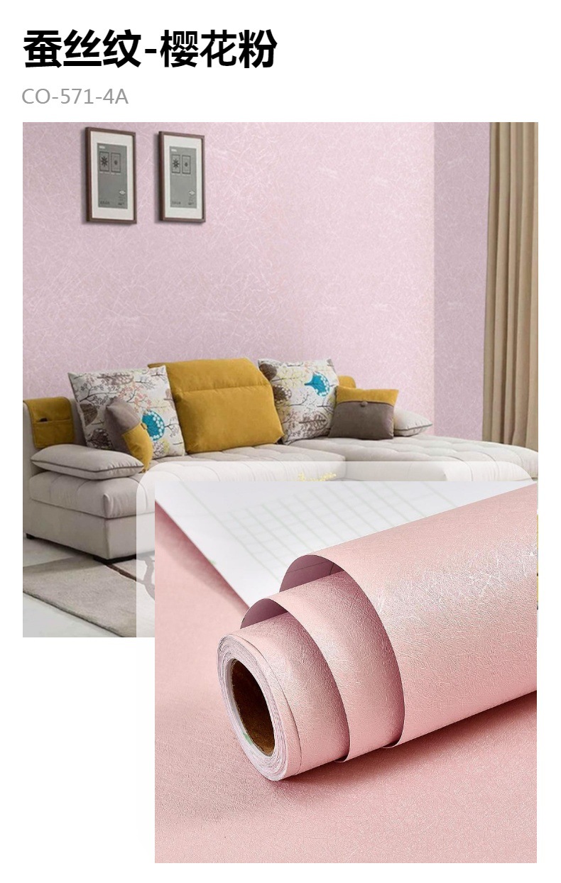 亚马逊热卖墙纸自粘纯色蚕丝纹加厚防水墙贴卧室客厅美化装饰壁纸