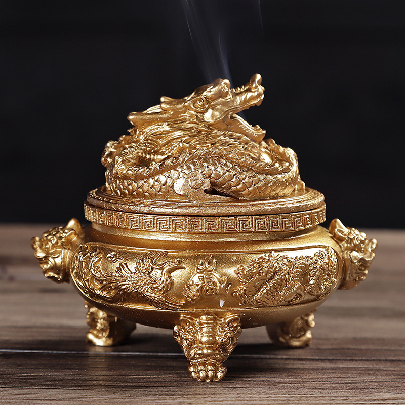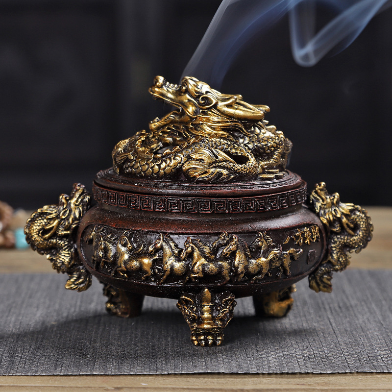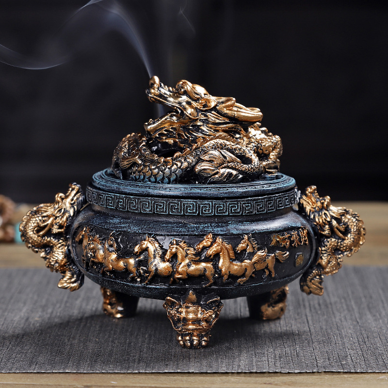 一件代发复古龙凤香炉青瓷陶瓷香炉仿古檀香冰裂窑变小香薰炉香插