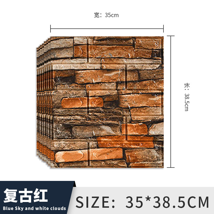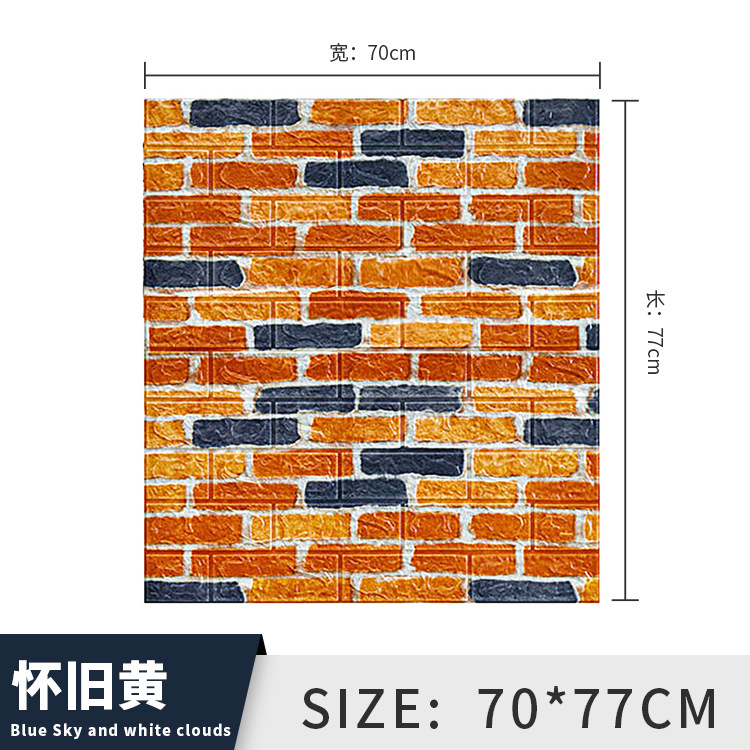 自粘3d立体墙贴厂家 儿童复古砖纹墙贴卧室背景墙自贴墙纸批发