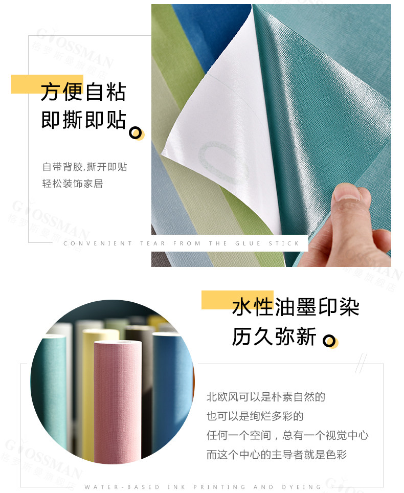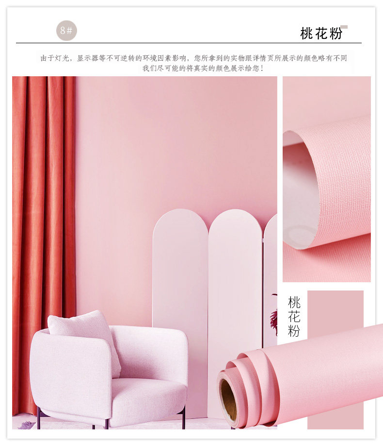 墙纸自粘防水防潮纯色宿舍家用温馨客厅卧室背景墙壁纸网红墙贴纸