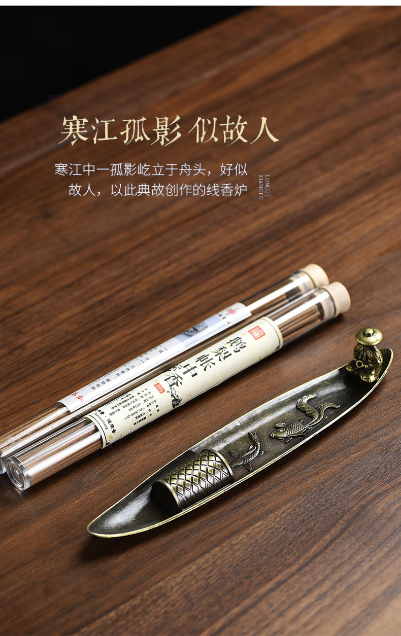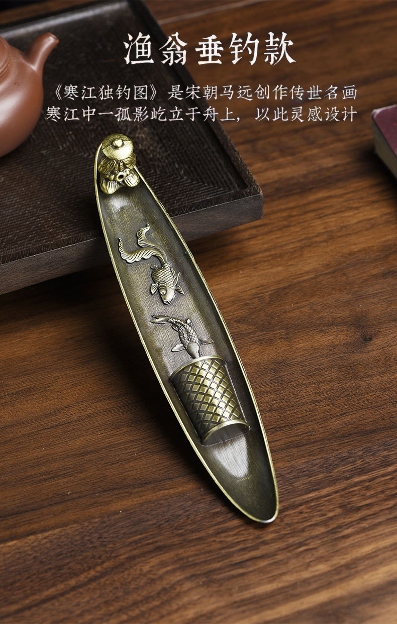 渔翁垂钓香插 室内家用茶桌熏香器 仿古 锌合金线香炉线香香插座