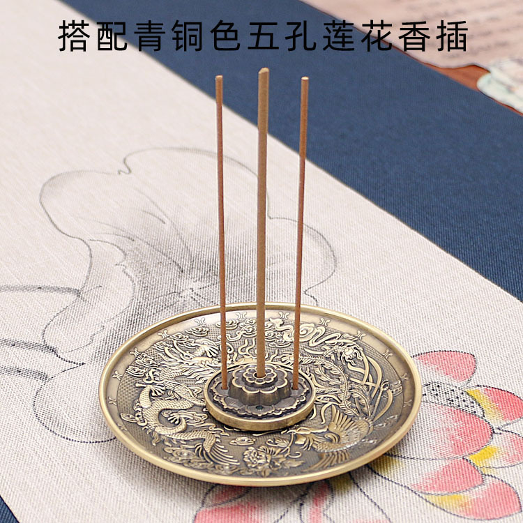 禅意香插香座香盘龙凤中式熏香炉家用线香插香托立体仿古铜线香炉