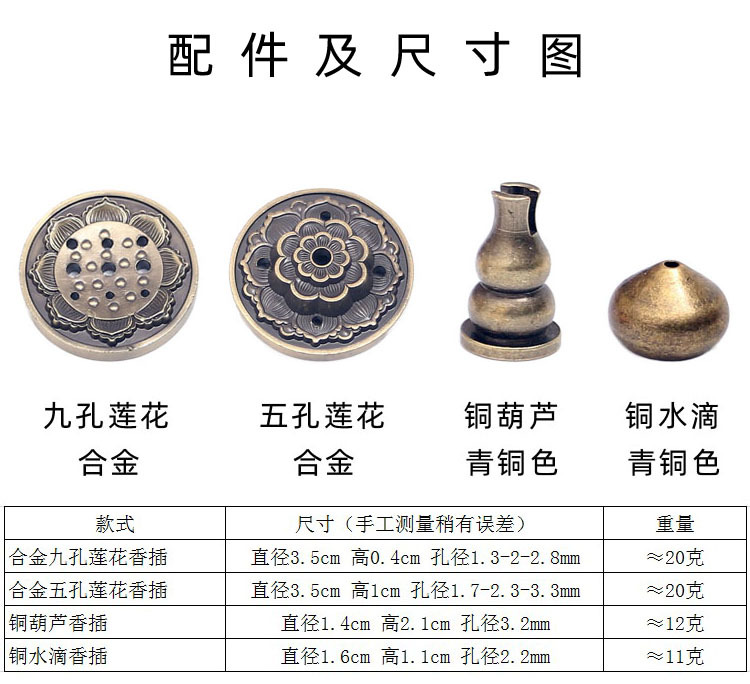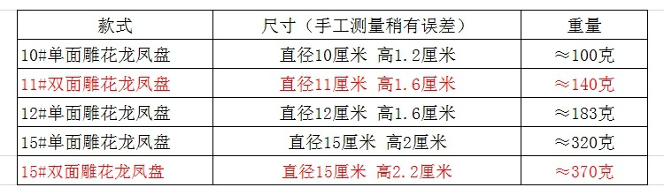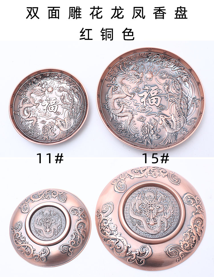 | 10# green dragon and phoenix plate-single-sided carving + natural color copper gourd incense holder(10#青龙凤盘-单面雕花+本色铜葫芦香插) | USD $1.56 | 2000 set available |