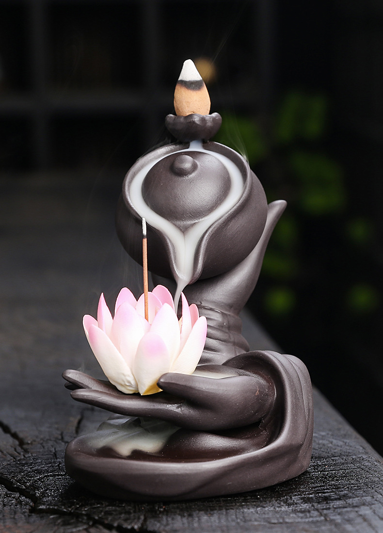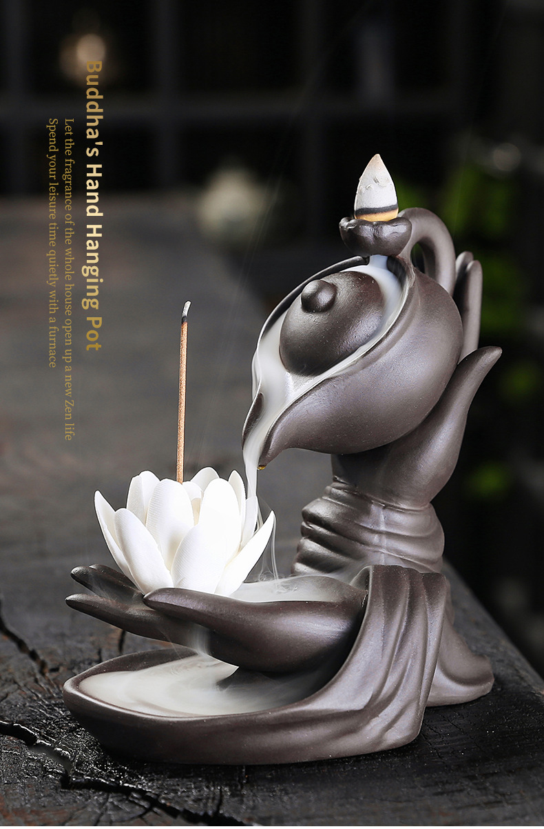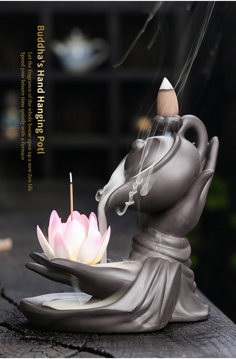跨境紫砂倒流香薰炉工艺品摆件 创意佛手莲花倒流香香炉家居饰品