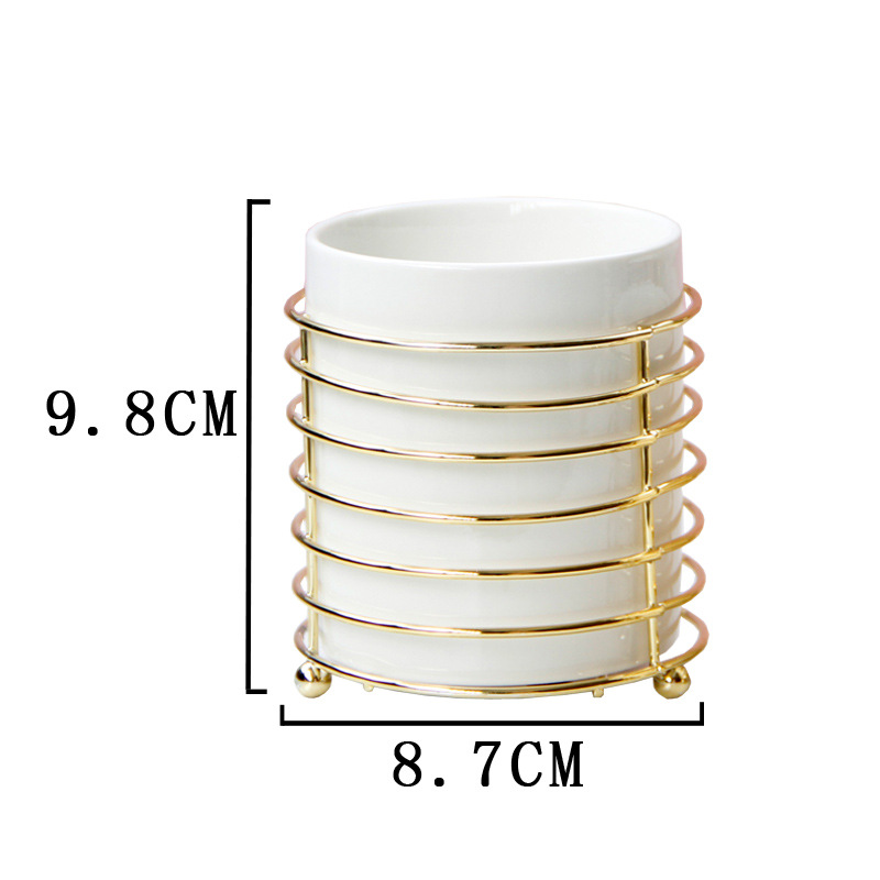 北欧铁艺陶瓷收纳盒现代风格陶瓷桌面收纳杯子化妆品首饰收纳盒桶