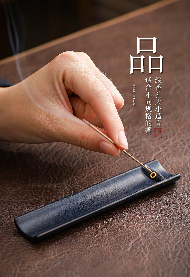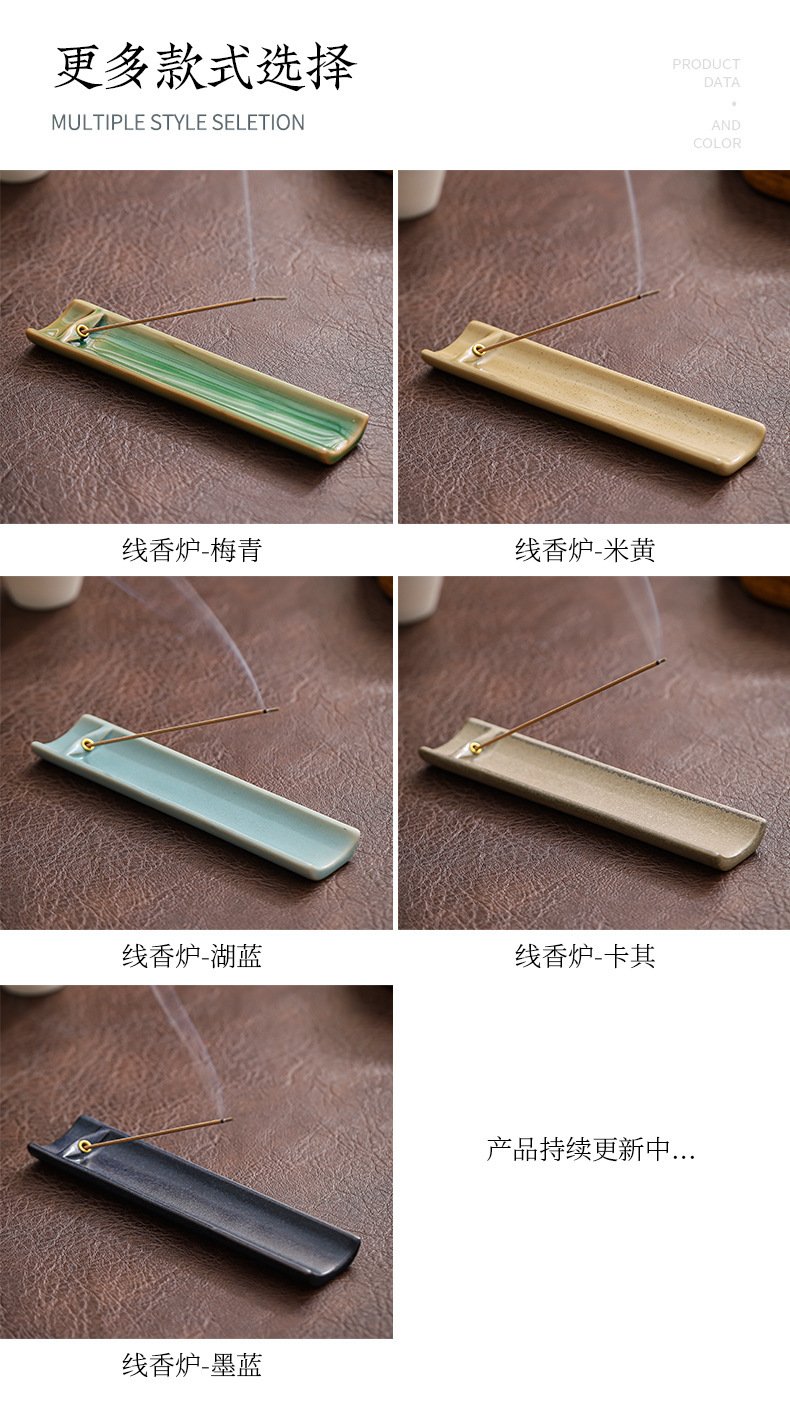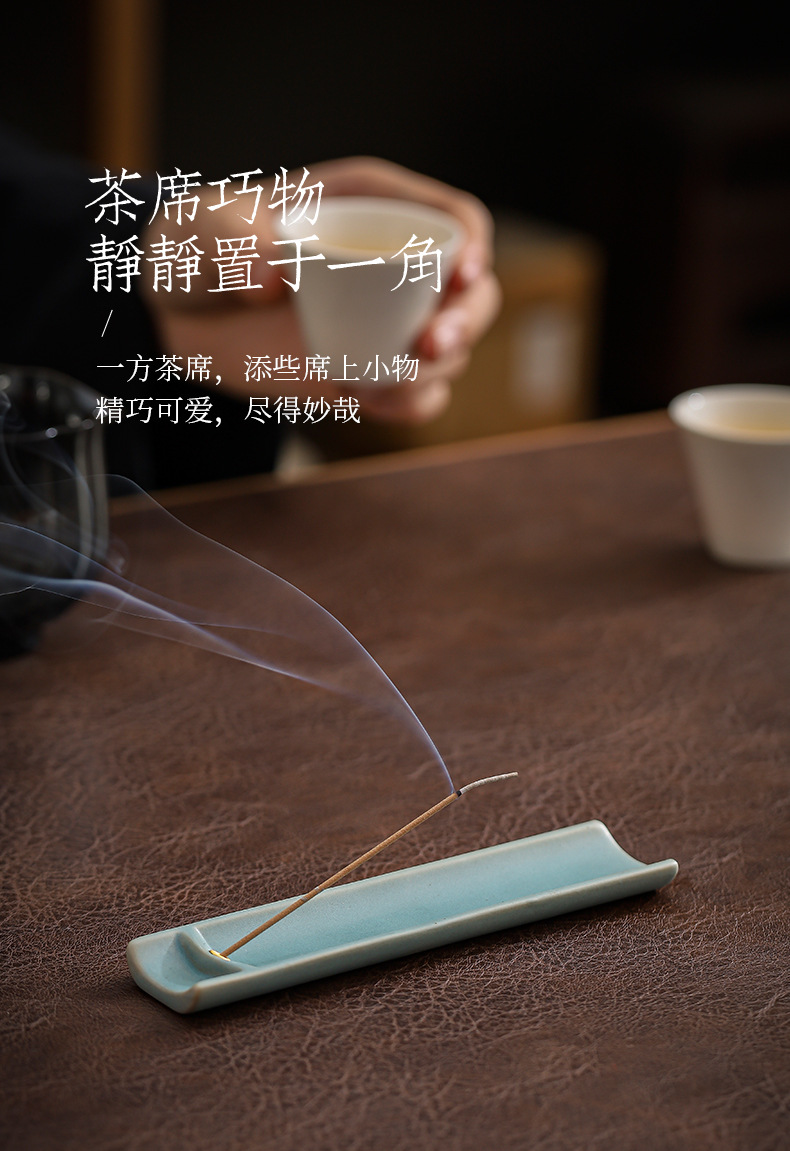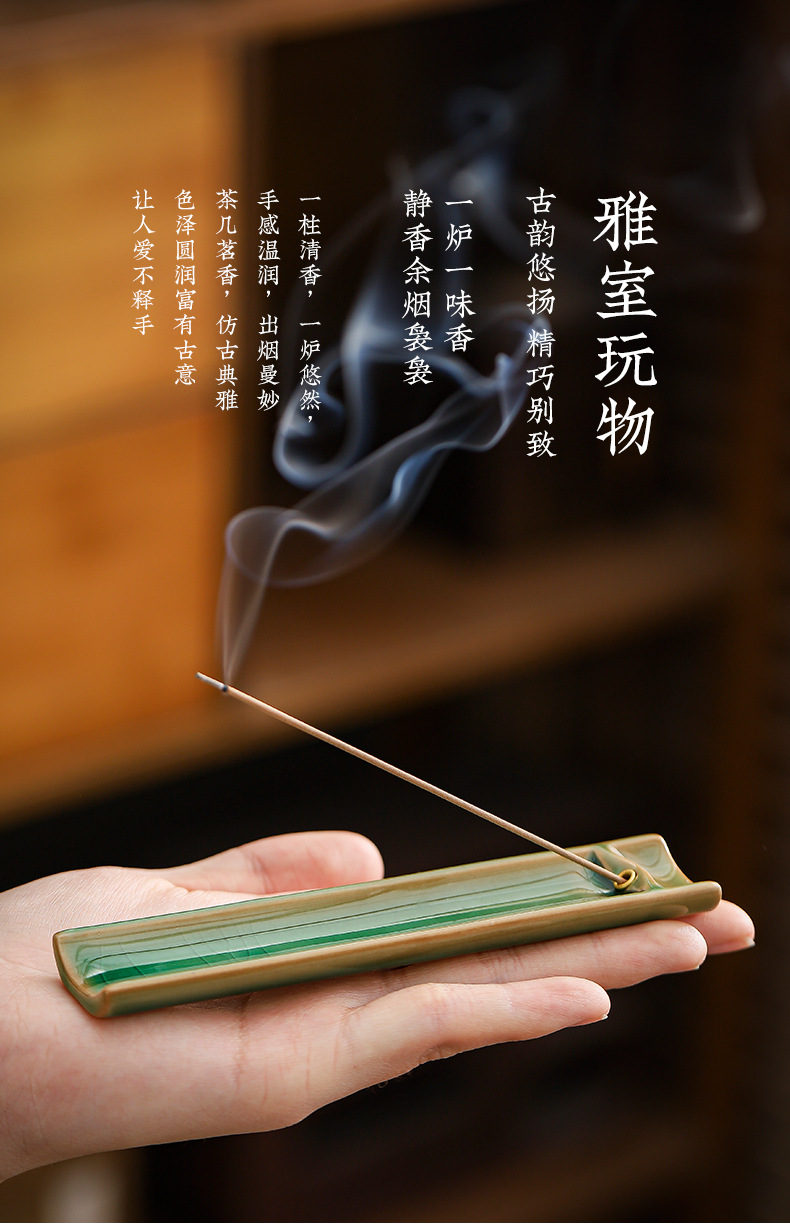 禅意陶瓷竹片线香插日式香座香盘插香器 茶道创意卧香炉 家用香托