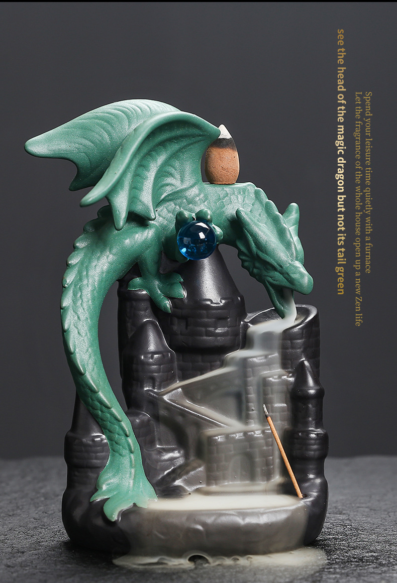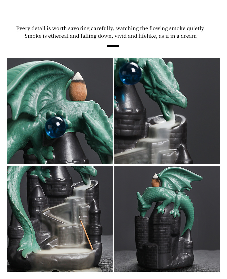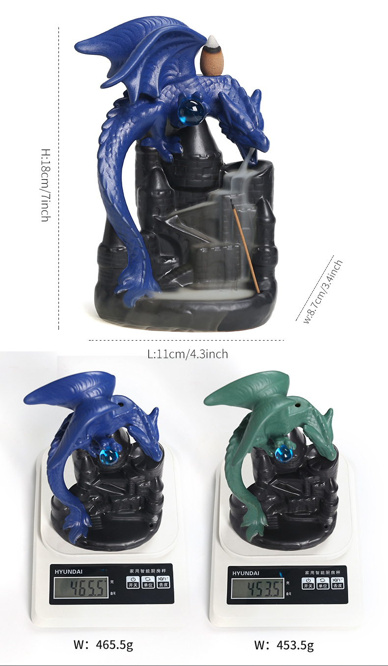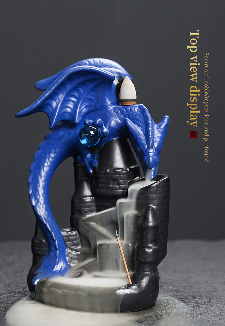 跨境陶瓷塔香倒流香炉创意欧美翼龙城堡观赏烟倒流香薰炉家居摆件