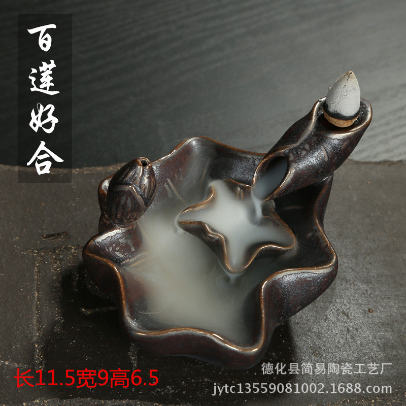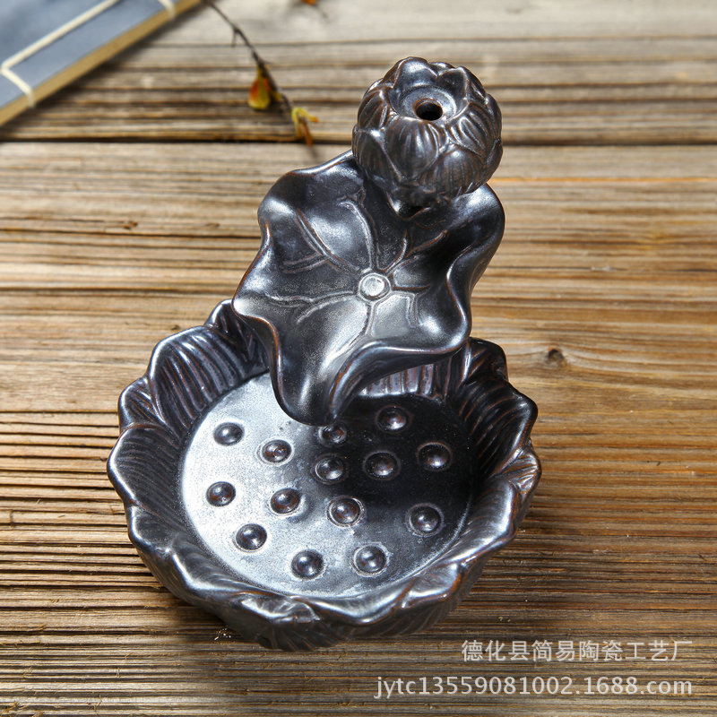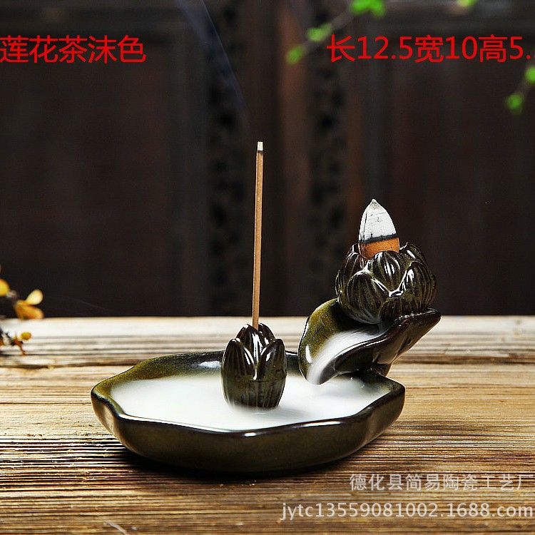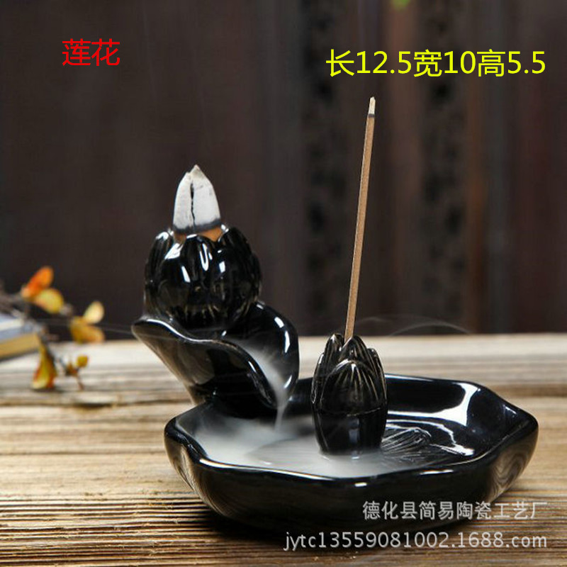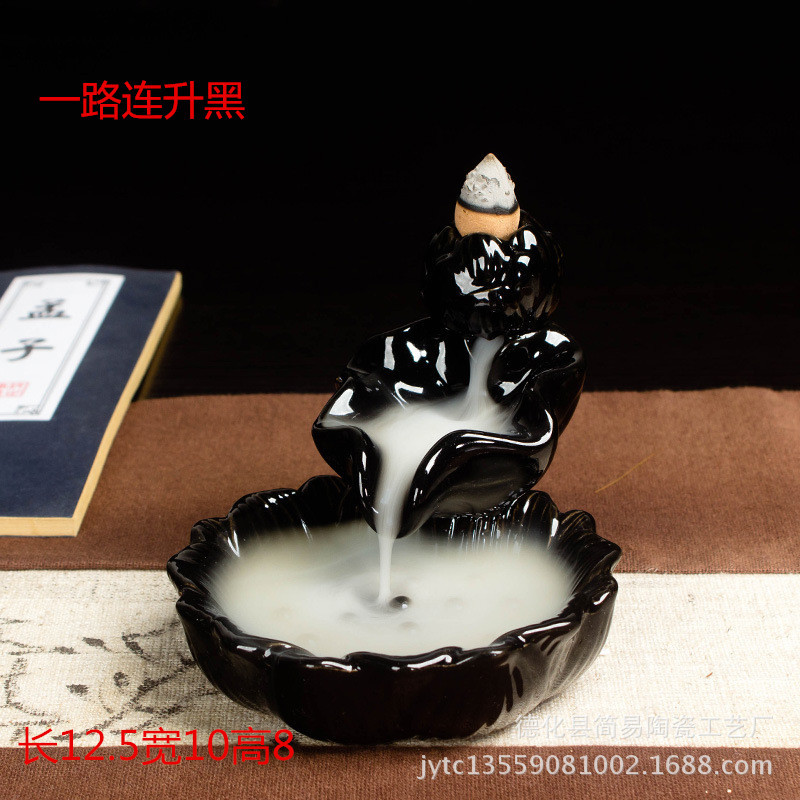 创意陶瓷倒流香炉 时来运转 一 莲升香炉佛香用具现货批发可混