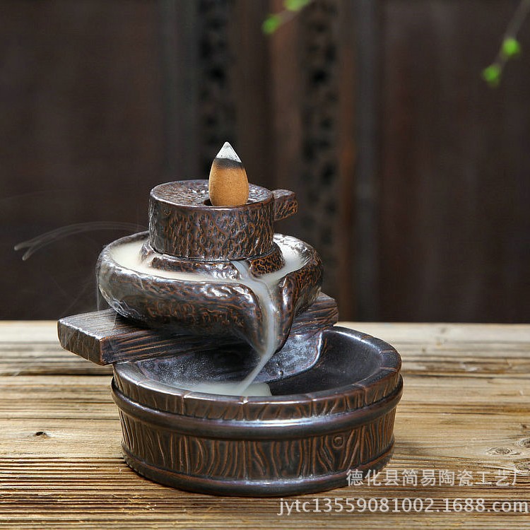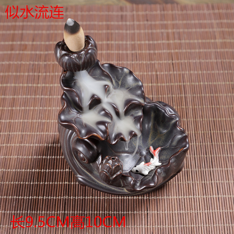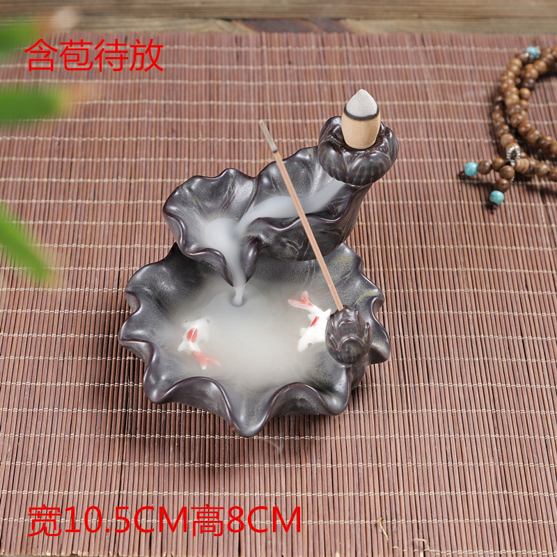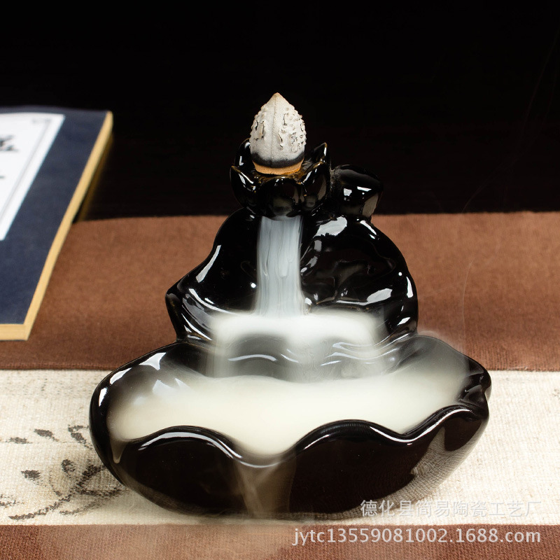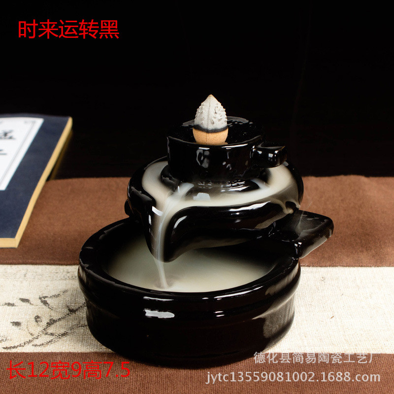 创意陶瓷倒流香炉 时来运转 一 莲升香炉佛香用具现货批发可混