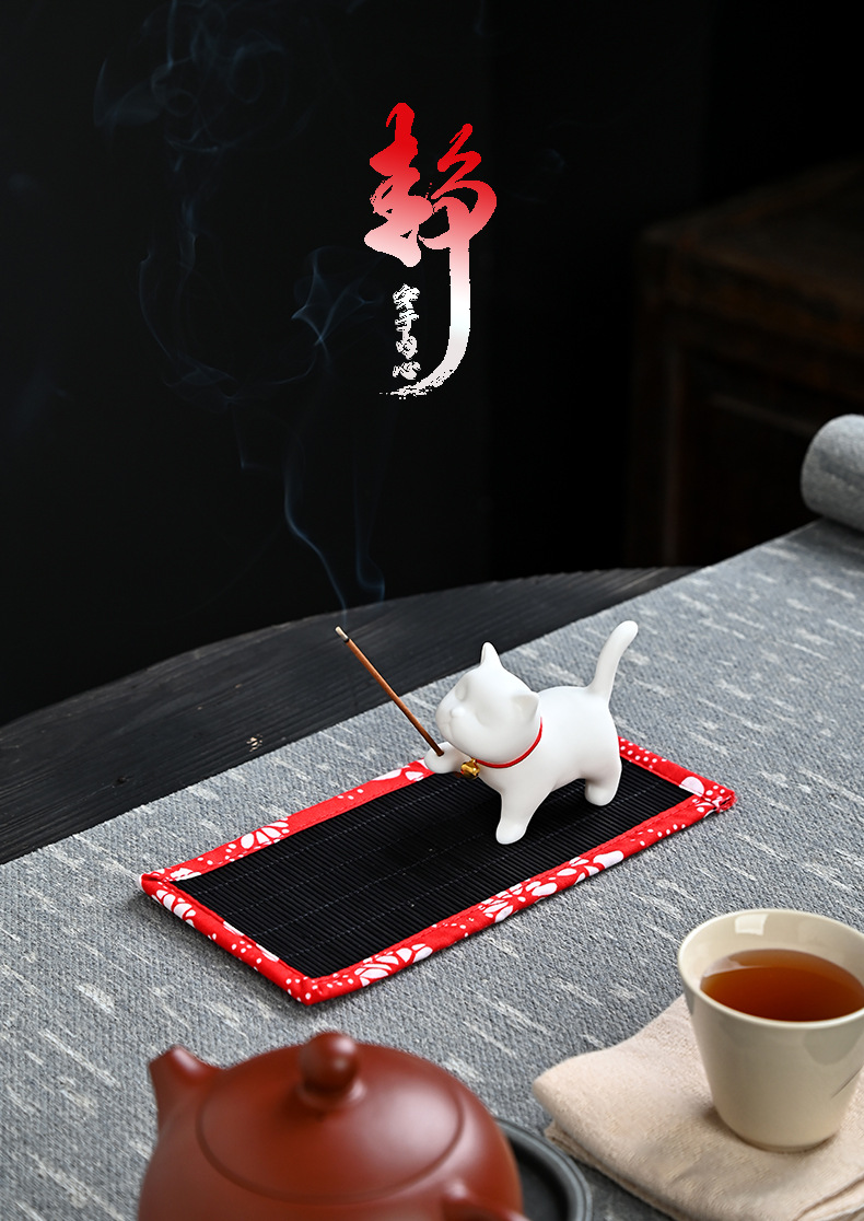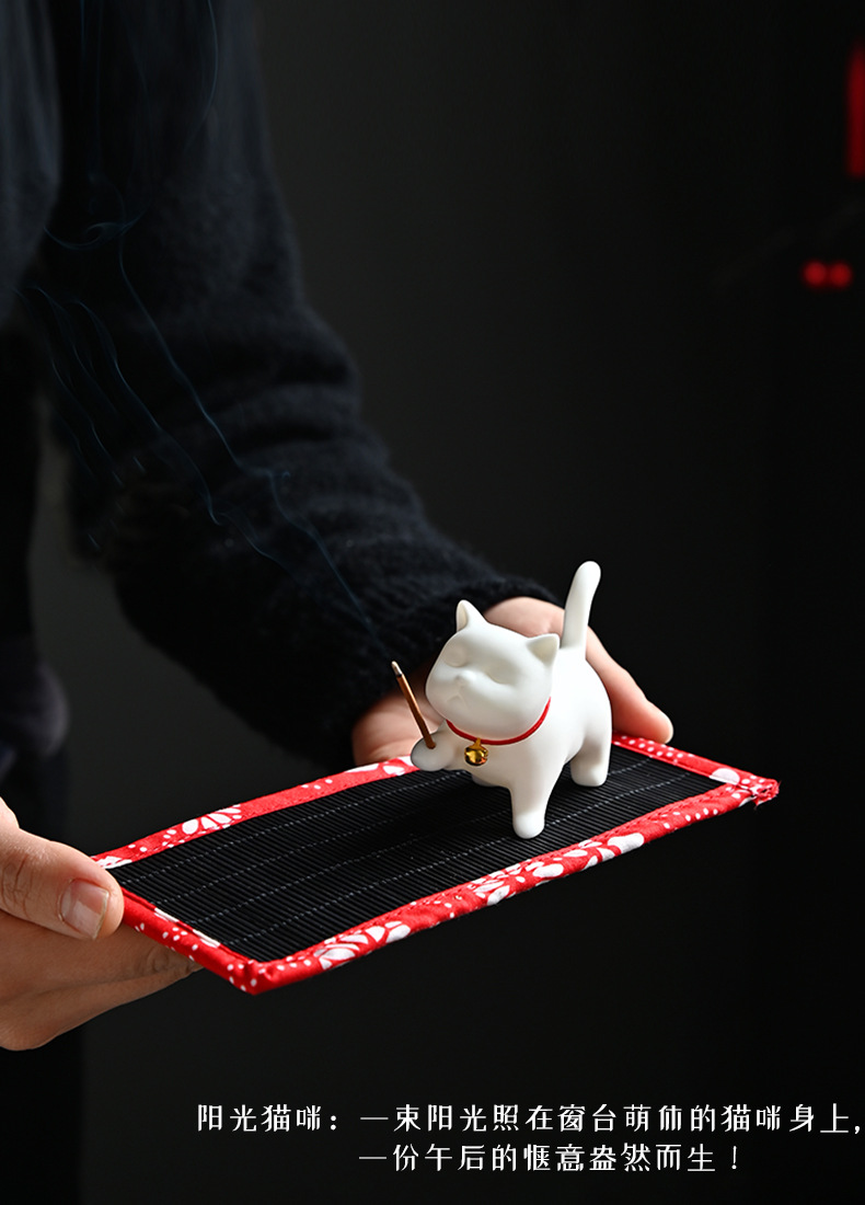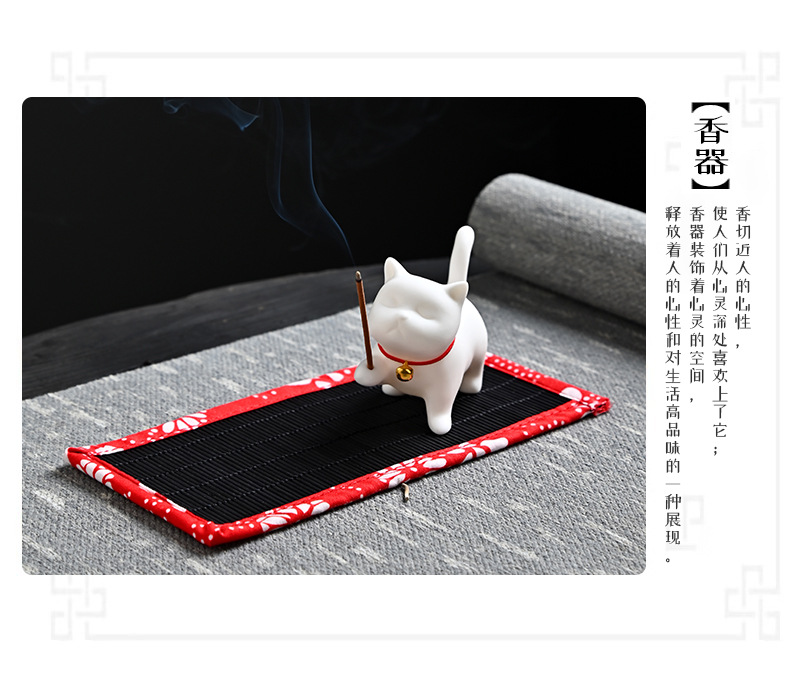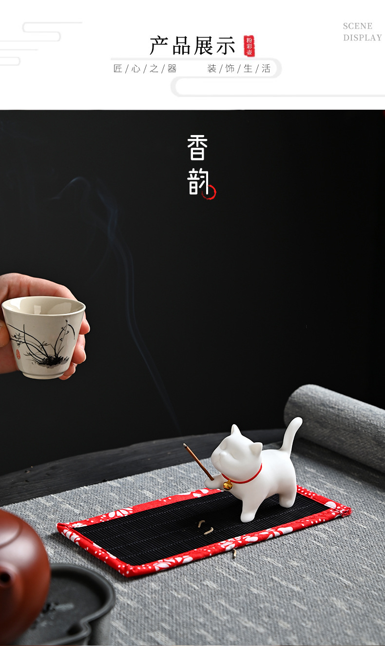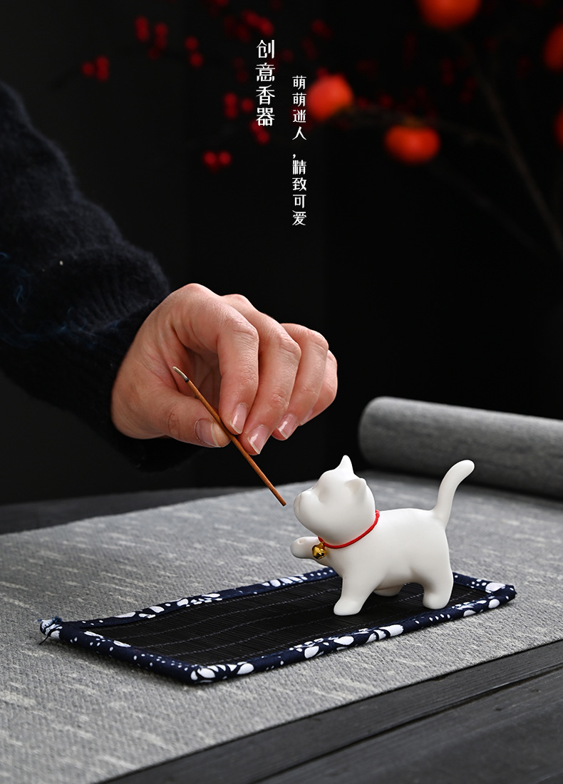 新款家用香道陶瓷小香炉插香香炉创意礼品猫咪线香香插香座香托