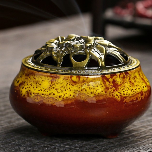 香炉陶瓷批发插香炉家用室内檀香炉摆件创意义乌窑变盘香冰裂香炉
