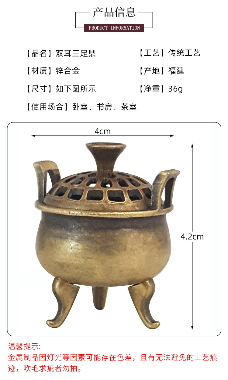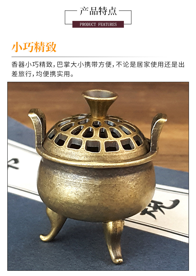 创意福气三足炉合金香炉小祥云无粘粉沉香檀香净化空气室内香薰