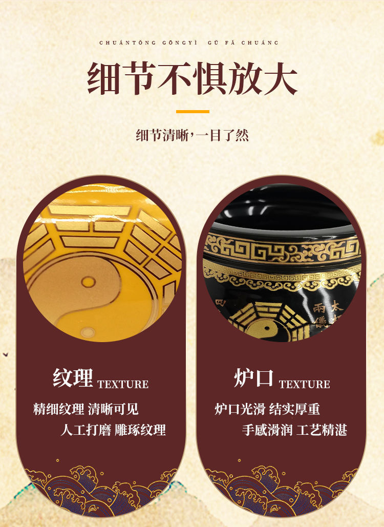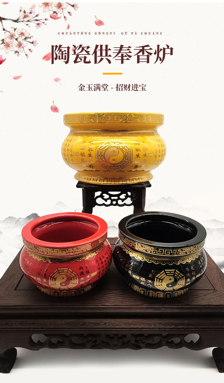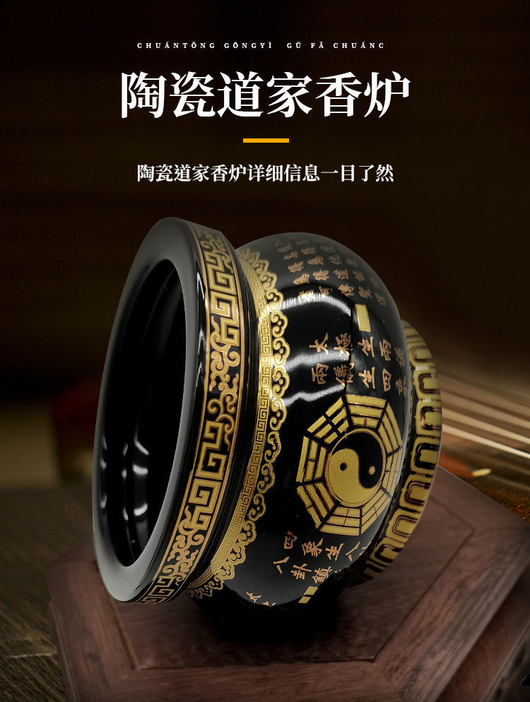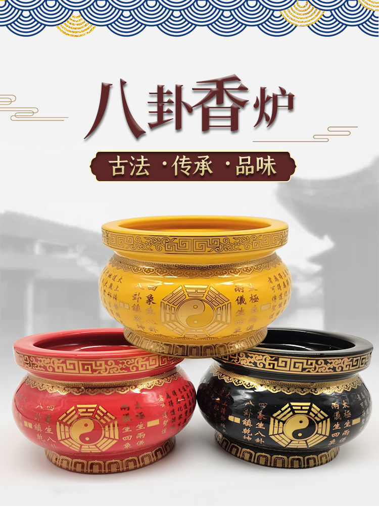 居家道家香炉三清八卦炉祖师雷祖九天玄女太上老君黄色太极香炉碗