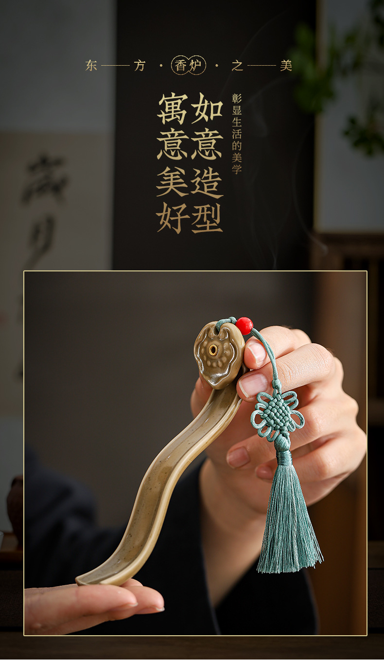陶瓷如意线香插创意家用香座浮雕如意茶桌小摆件室内家用茶室香薰
