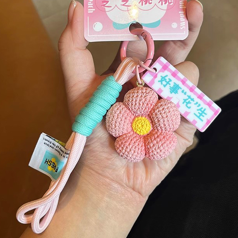 ins莓有烦恼钥匙扣女生精致包包挂饰个性车钥匙挂件花朵创意手绳