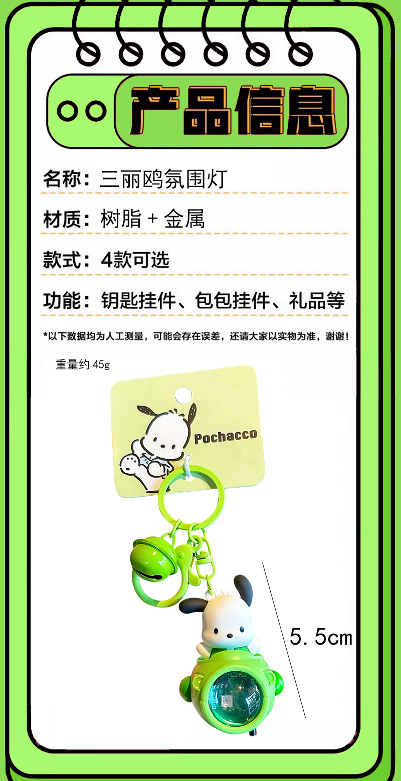 正版三丽鸥大耳狗钥匙扣落日氛围灯多功能钥匙链帕恰狗库洛米挂件