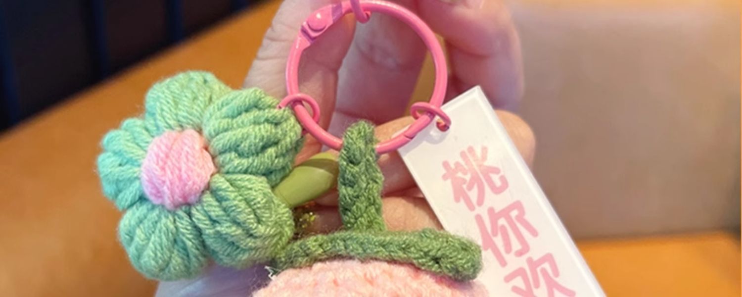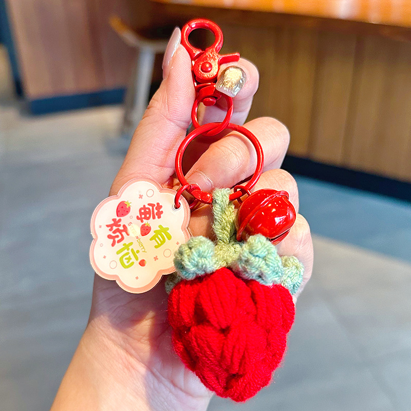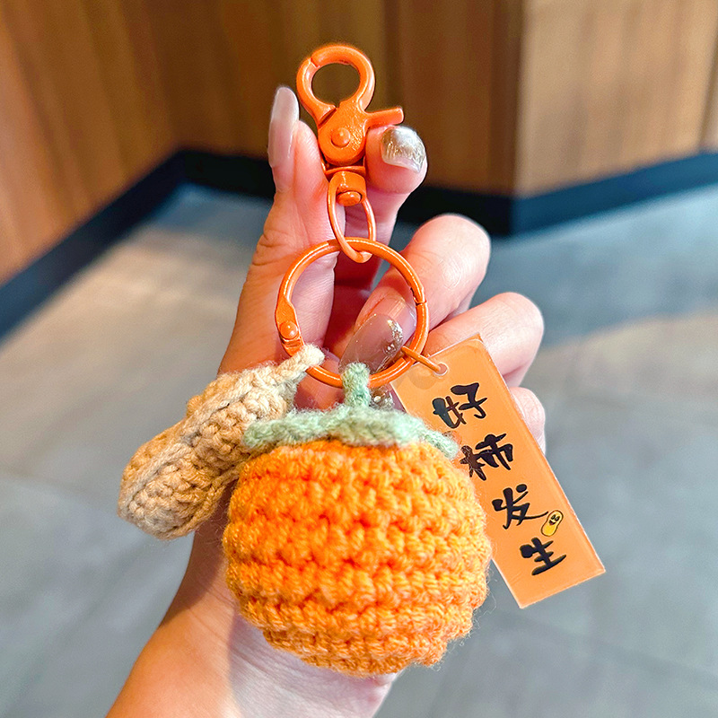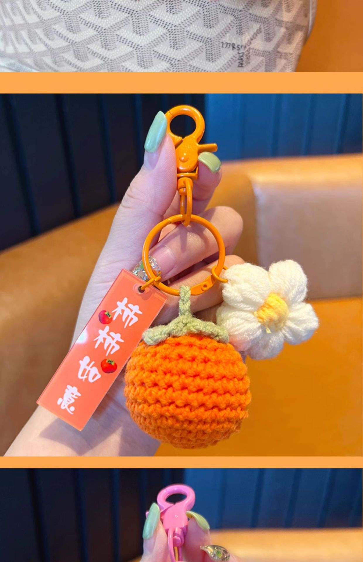 2024新款好事发生钥匙扣手工针织毛线柿柿如意莓有烦恼包包挂饰女