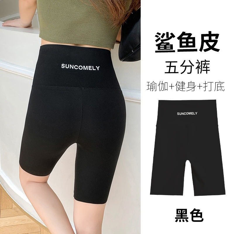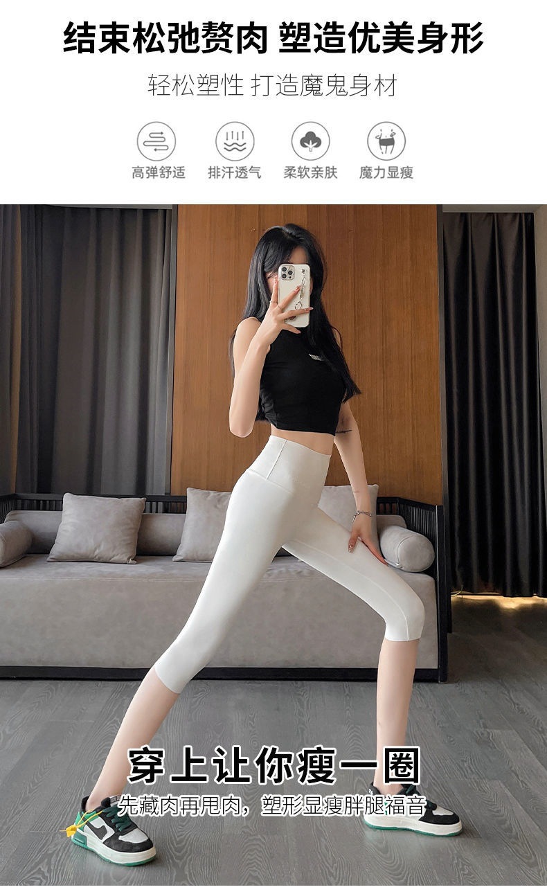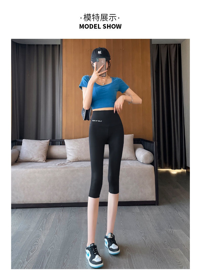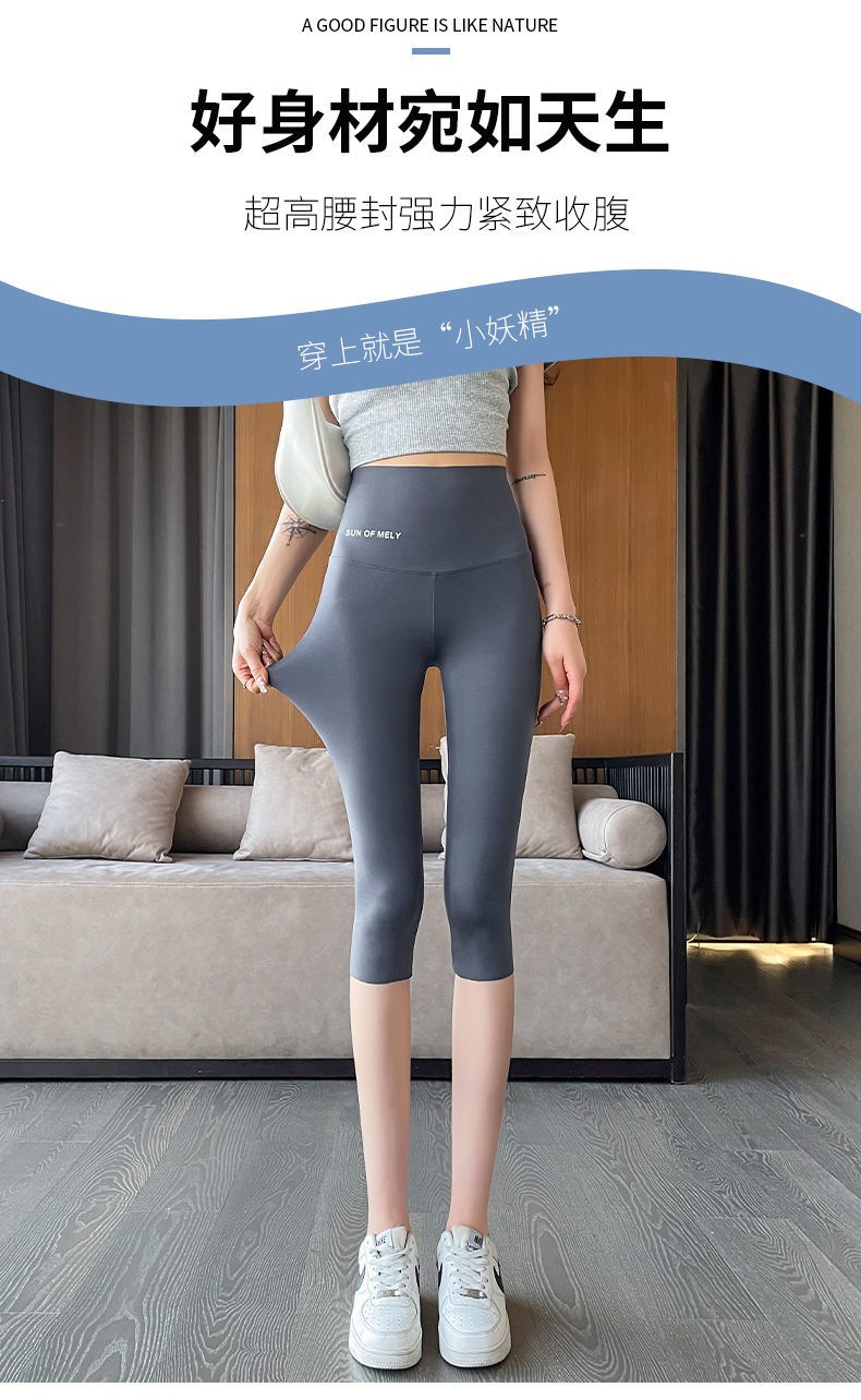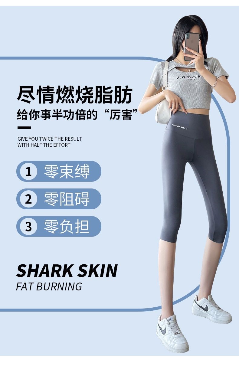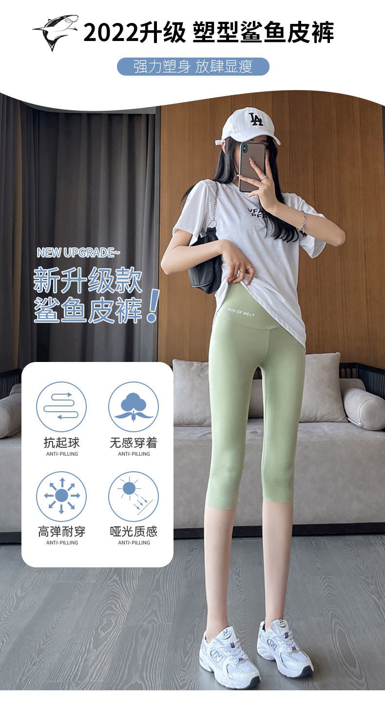 鲨鱼皮打底裤女夏季薄款外穿修身收腹提臀七分高腰印字芭比瑜伽裤