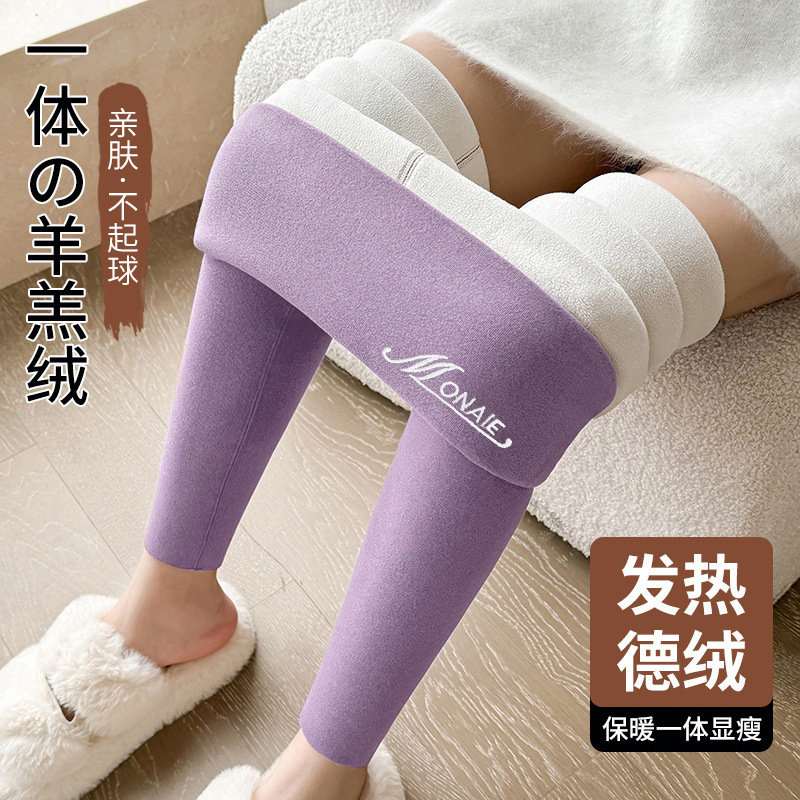 双面德绒打底裤女冬季加厚羊羔绒保暖棉裤高腰大码可外穿修身长裤