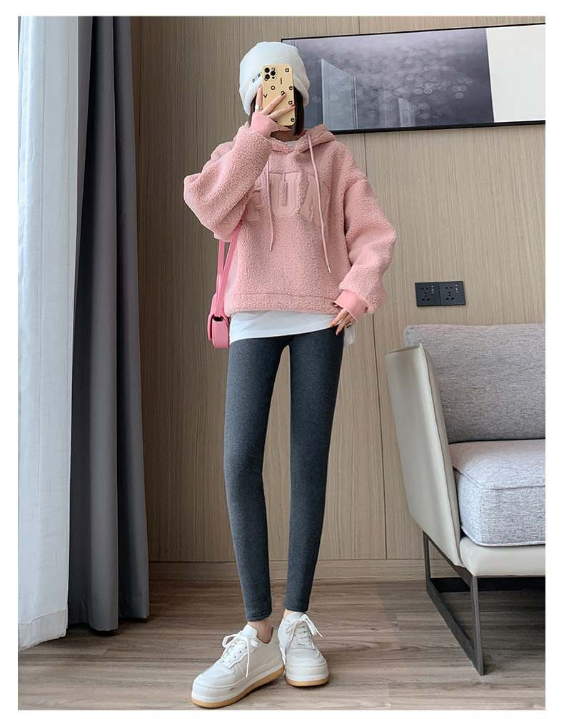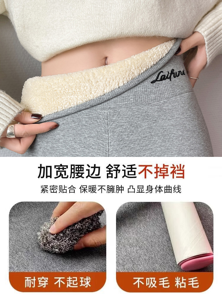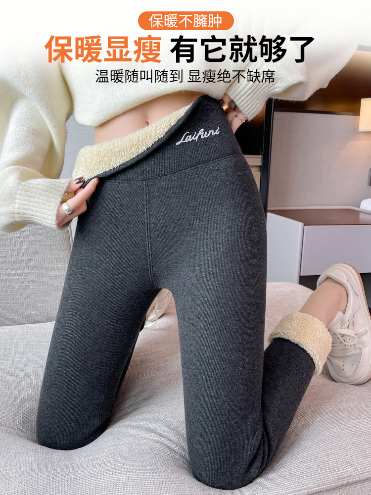 羊羔绒打底裤女外穿冬季加绒加厚高腰绣字加大码东北特厚保暖棉裤