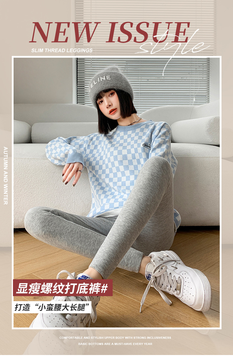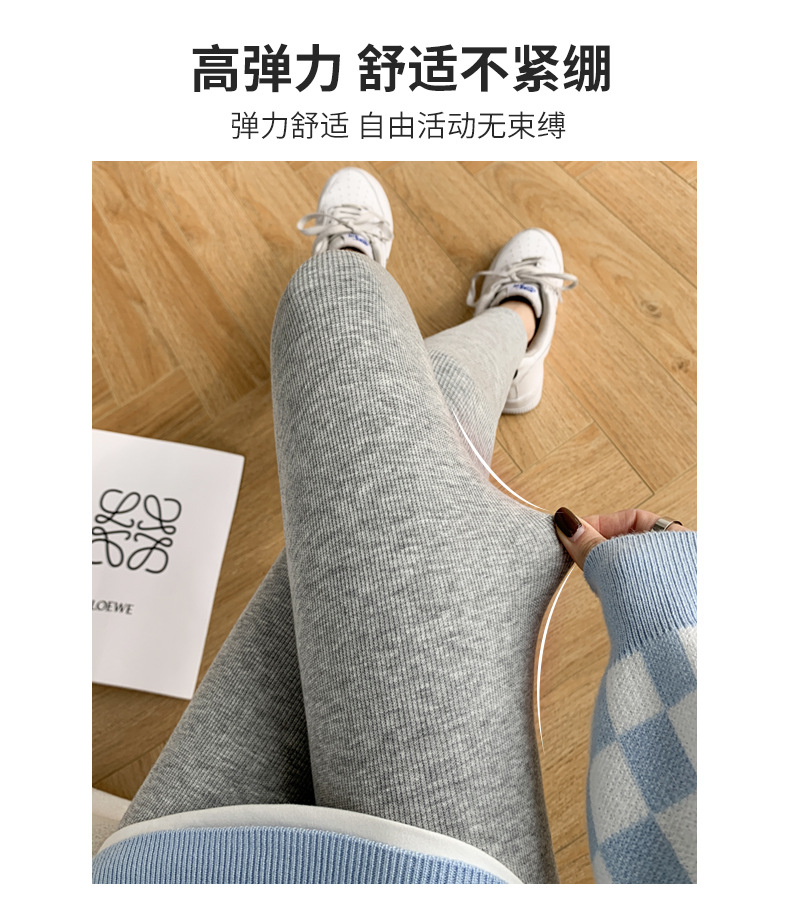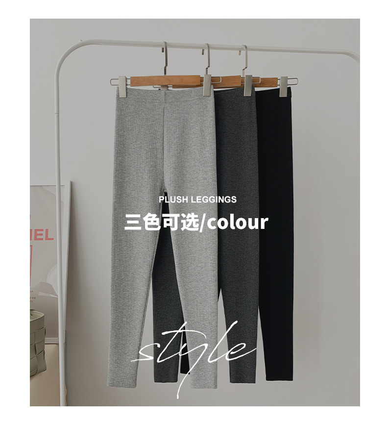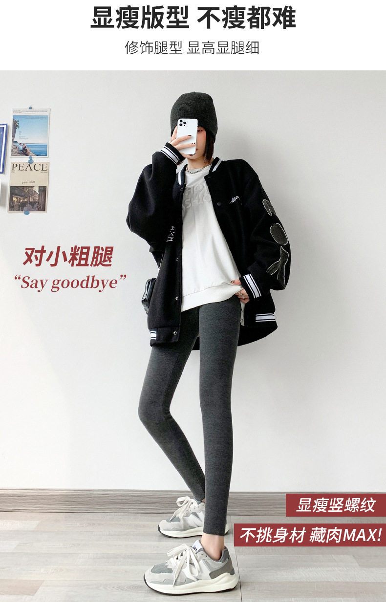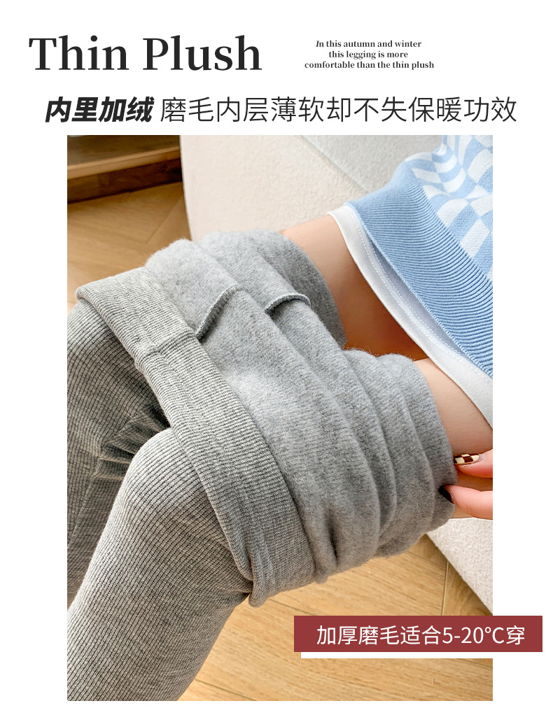 2025新款秋冬季磨毛螺纹打底裤女可外穿高腰修身显瘦高弹保暖长裤