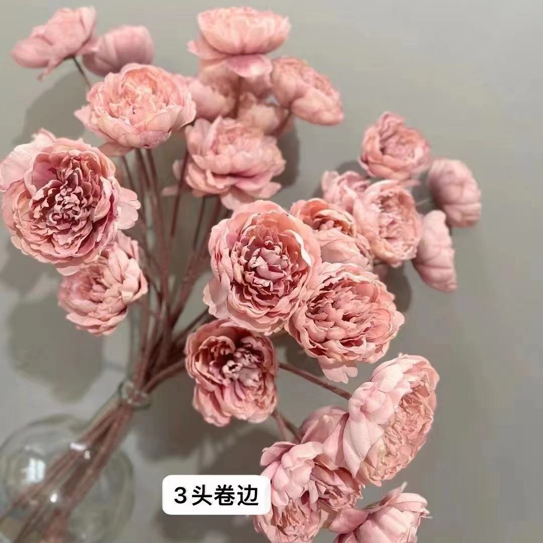 烤边牡丹芍药芙蓉花复古仿真花家居婚庆婚礼堂烫边卷边玫瑰芍药