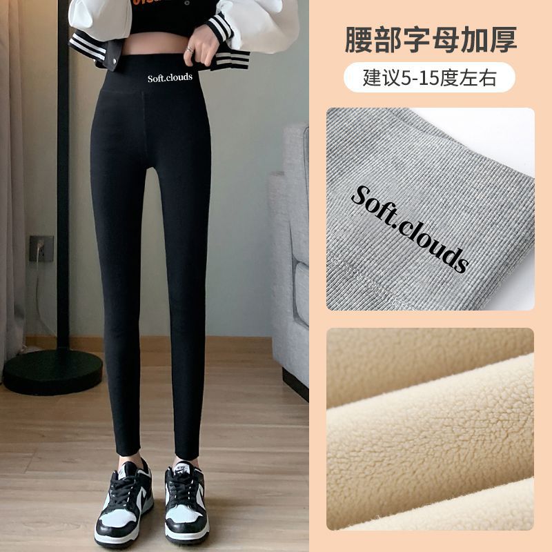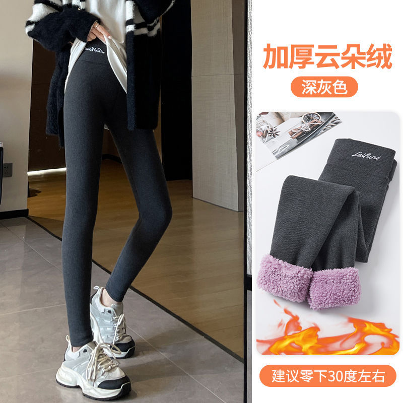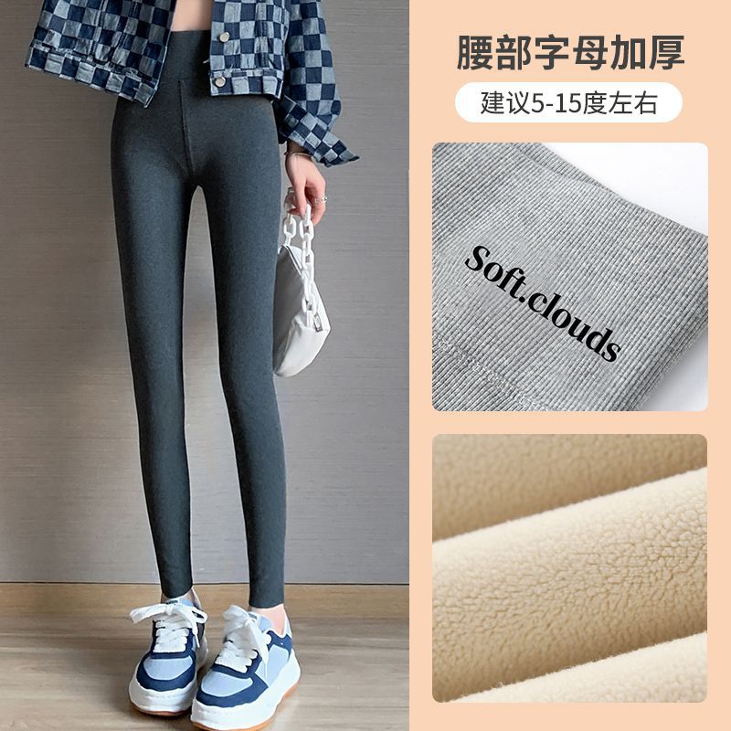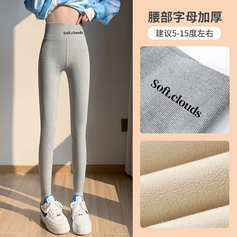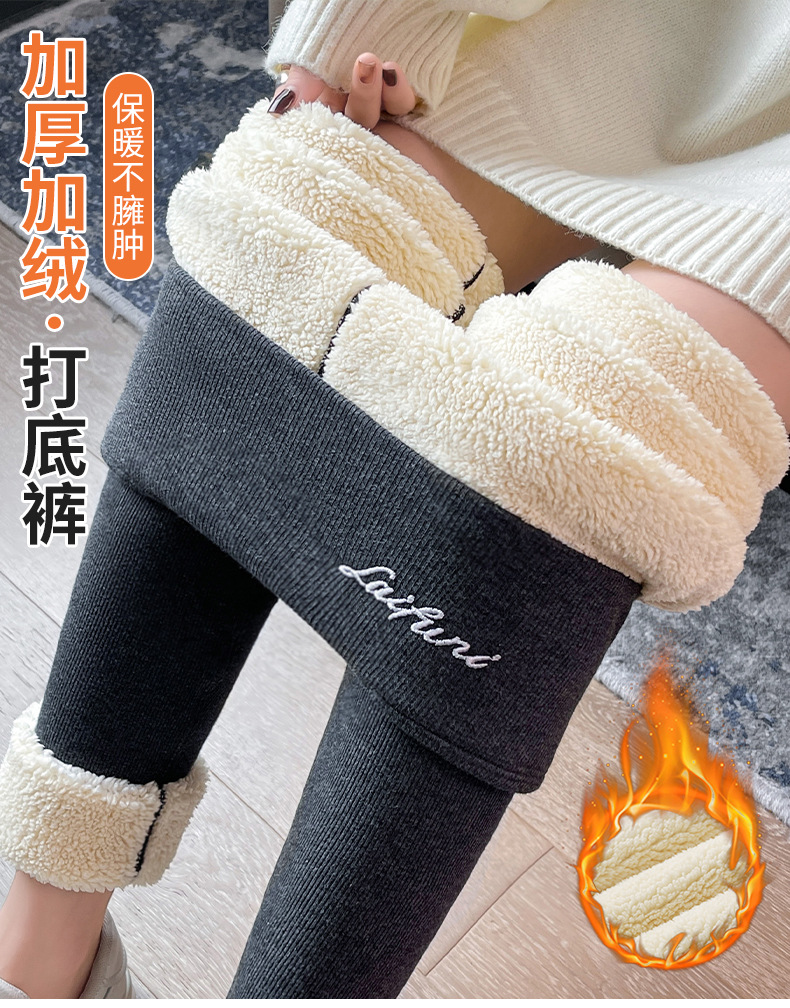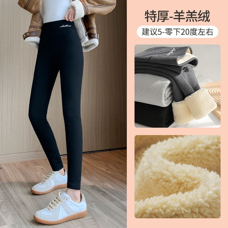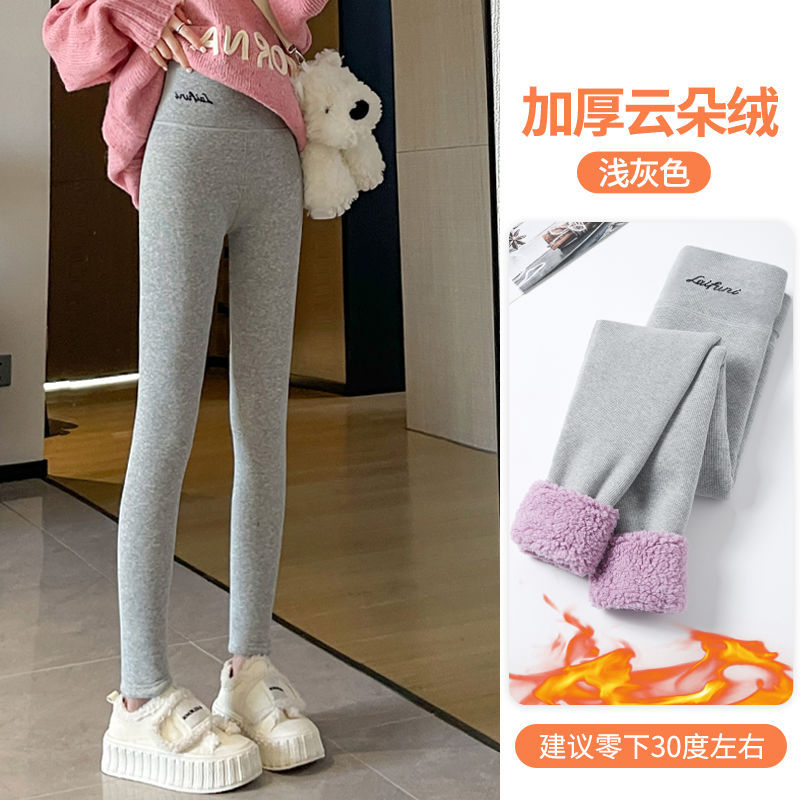 加绒打底裤女外穿秋冬季灰色高腰加厚羊羔绒秋裤东北特厚保暖棉裤