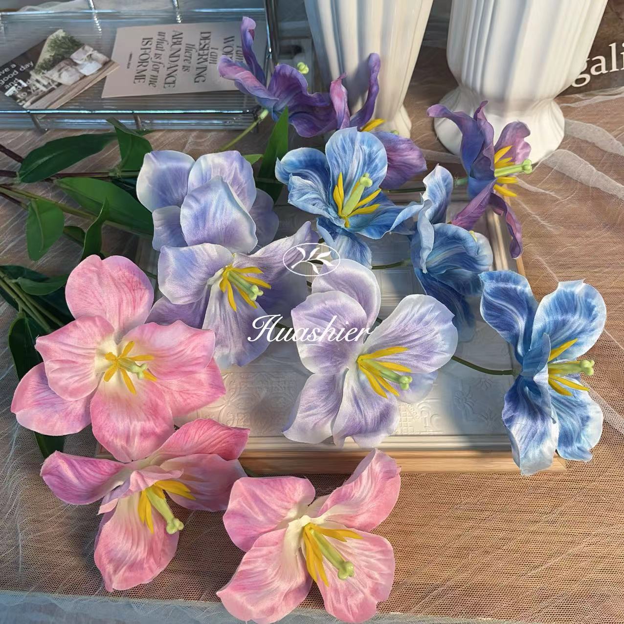 法式仿真翻瓣婚庆高端婚礼堂装饰造景插花挑高花郁金香三头大百合