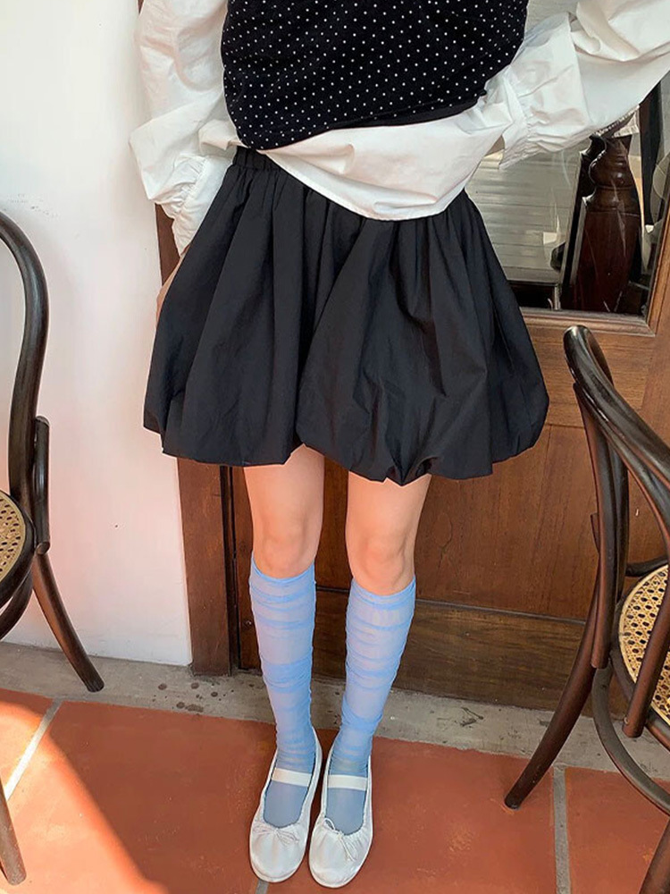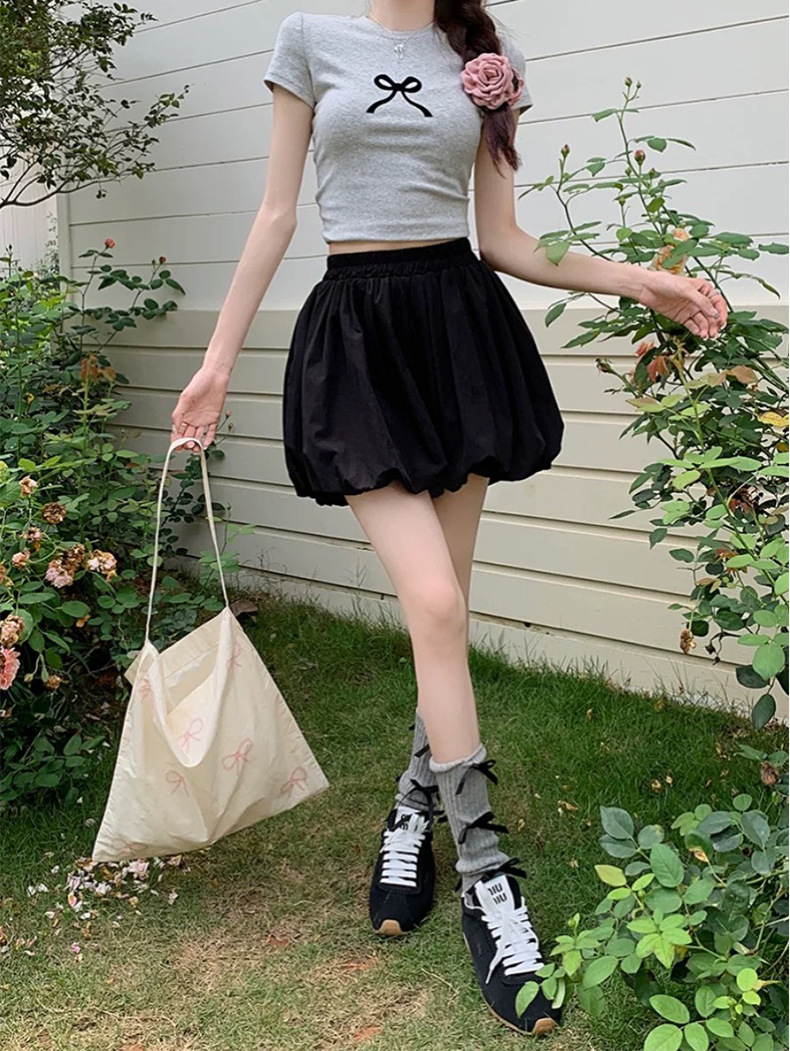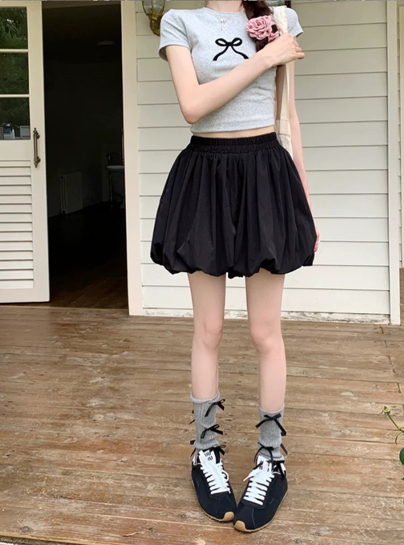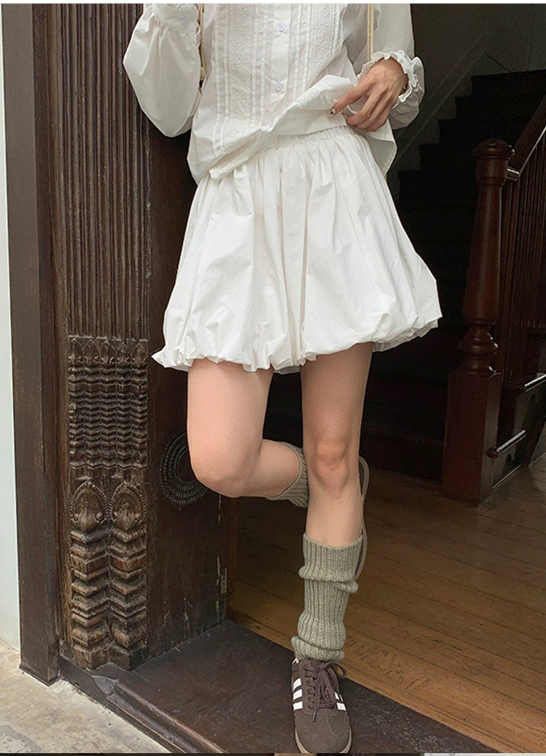 设计感白色短裙高腰显瘦半身裙女装夏季小众花苞裙黑色蓬蓬a字裙