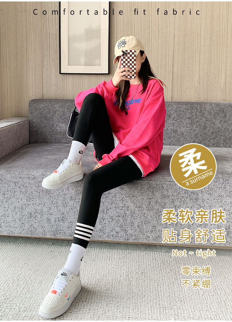 品质严选打底裤外穿秋冬季新款加绒加厚九分高腰螺纹显瘦百搭弹力