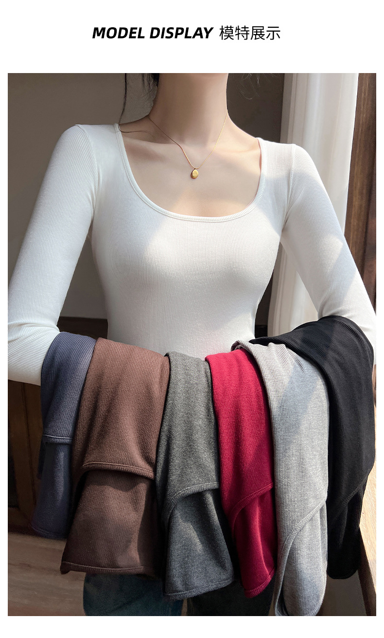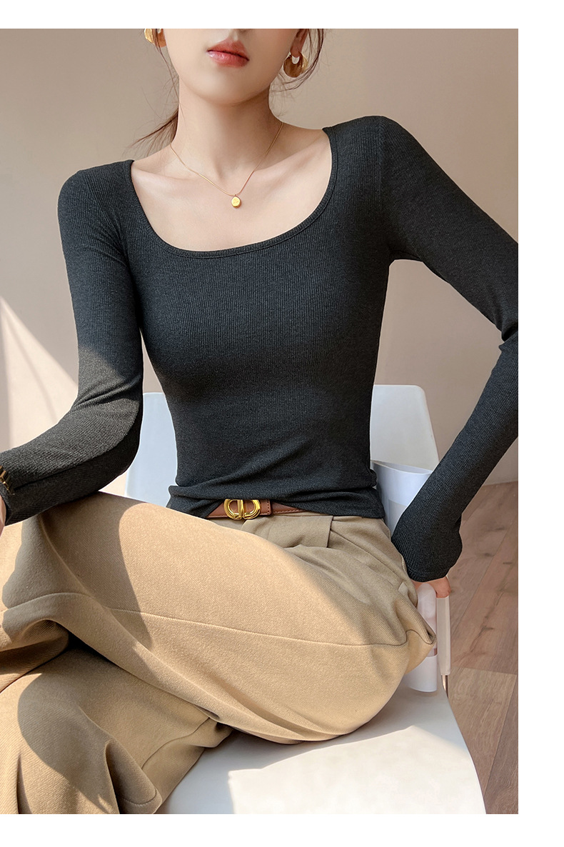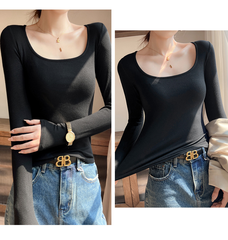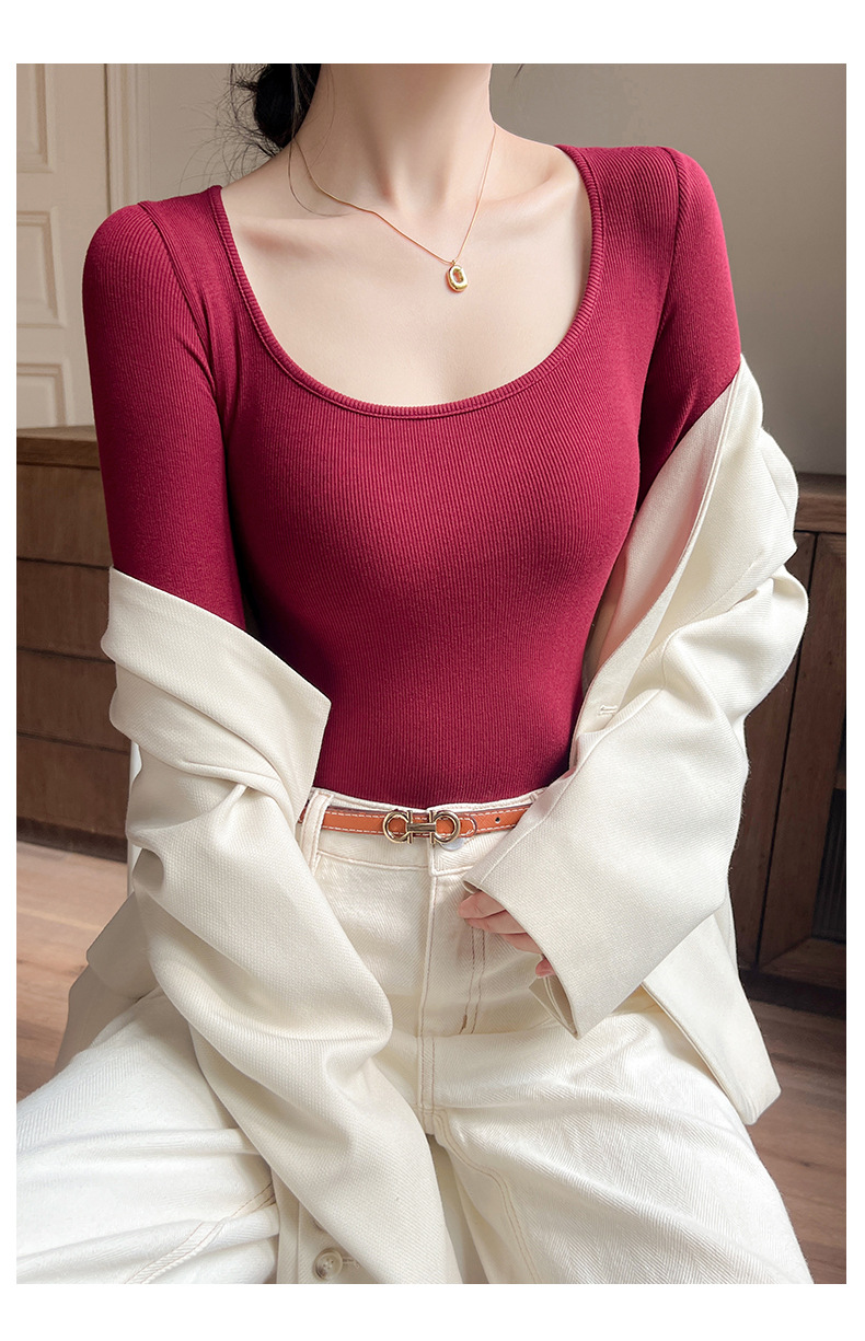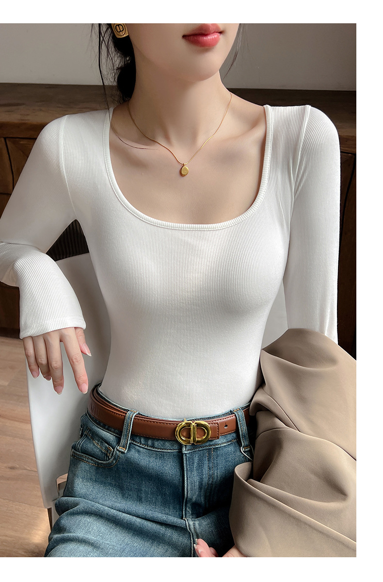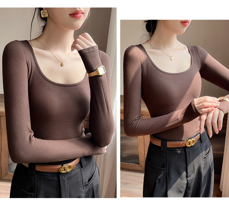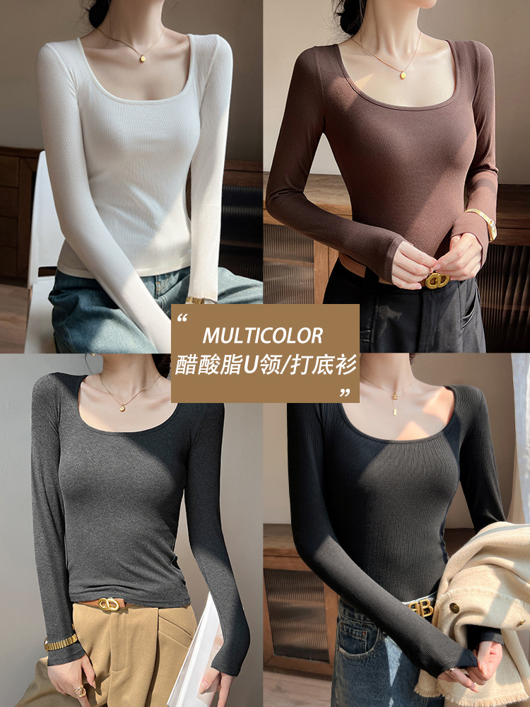 2025新款醋酸酯大U领长袖修身百搭设计感打底衫女可外穿秋冬上衣