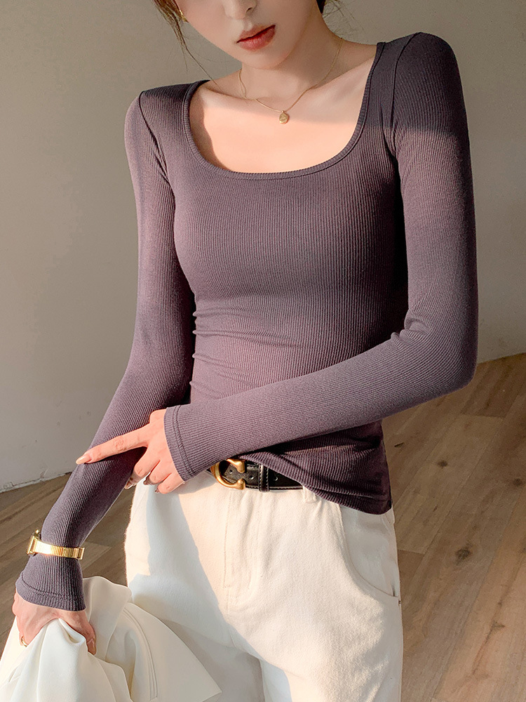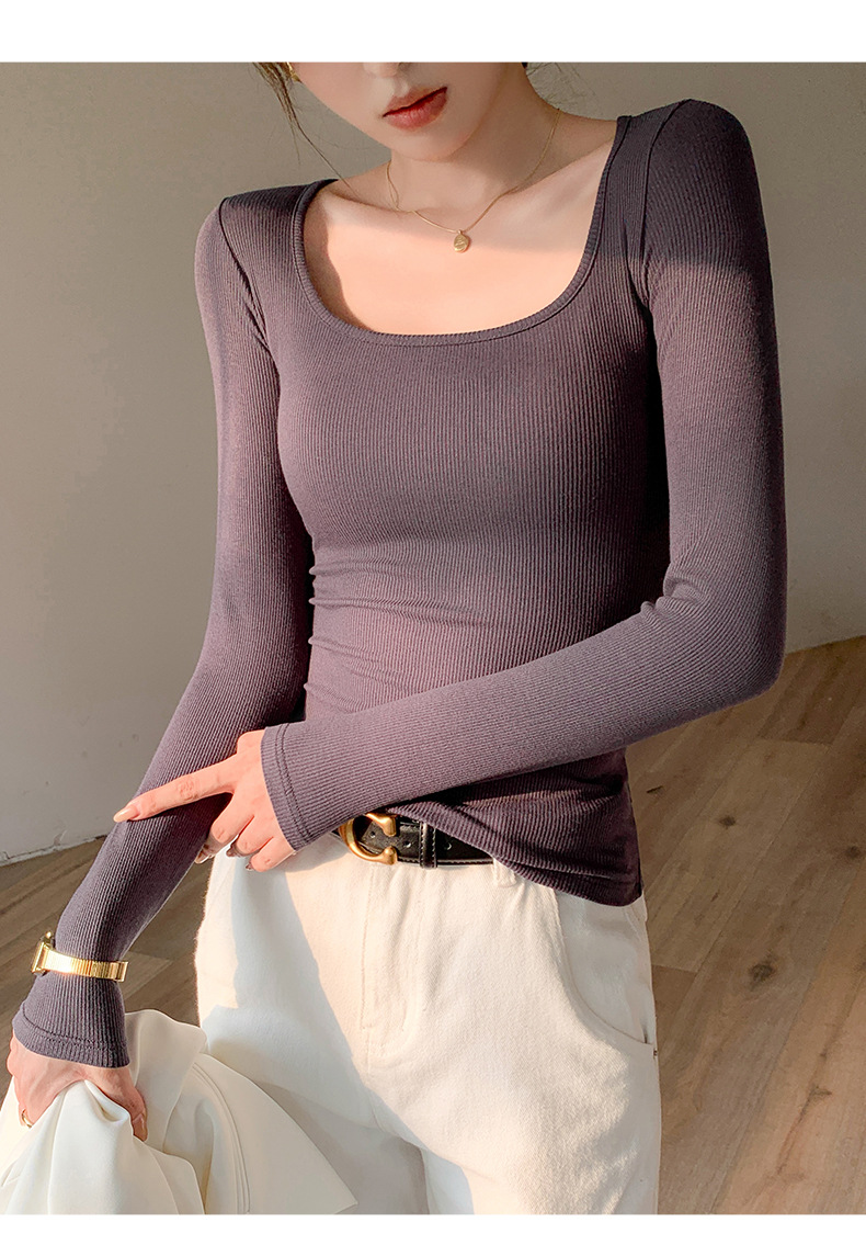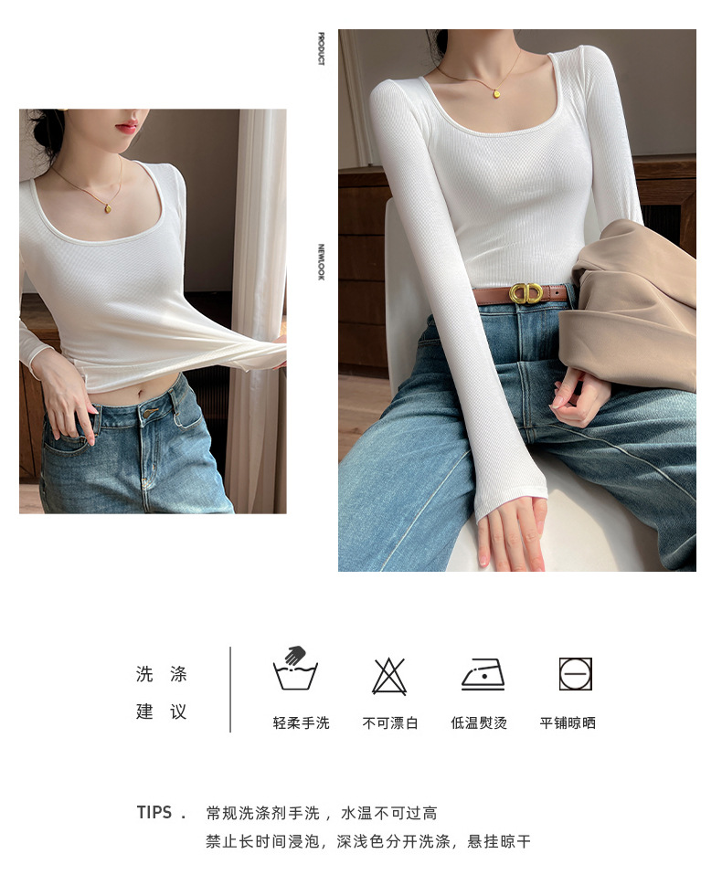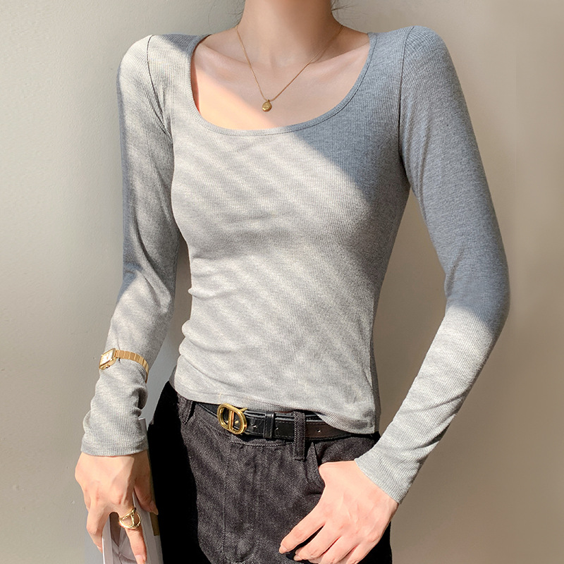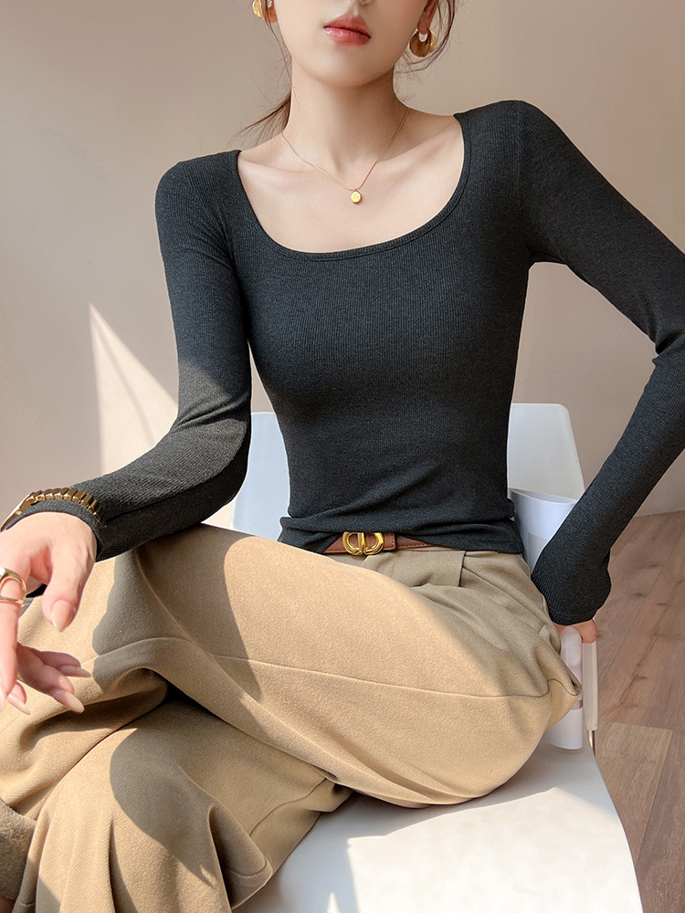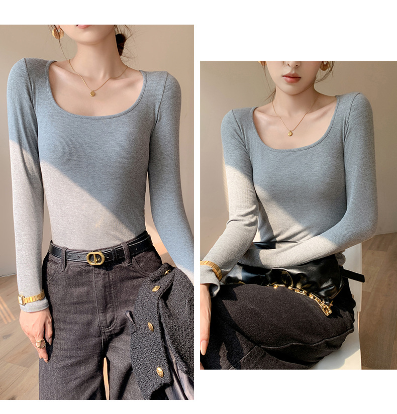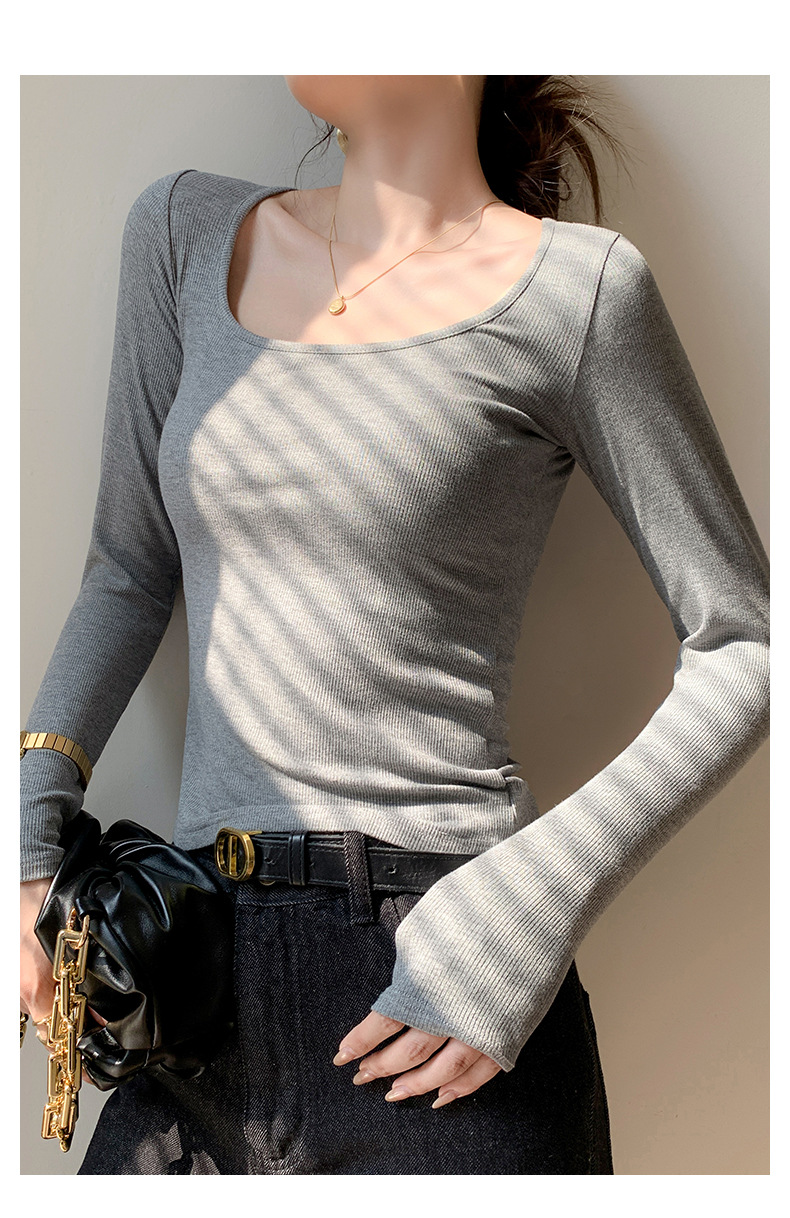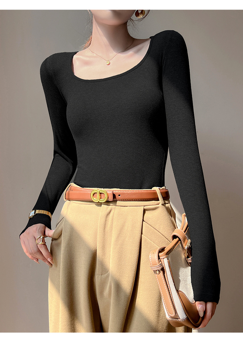 2025新款醋酸酯大U领长袖修身百搭设计感打底衫女可外穿秋冬上衣