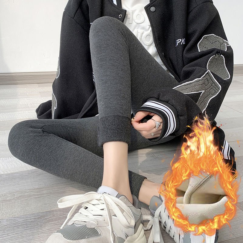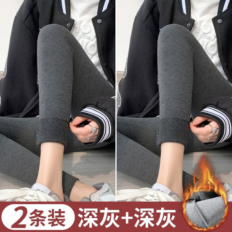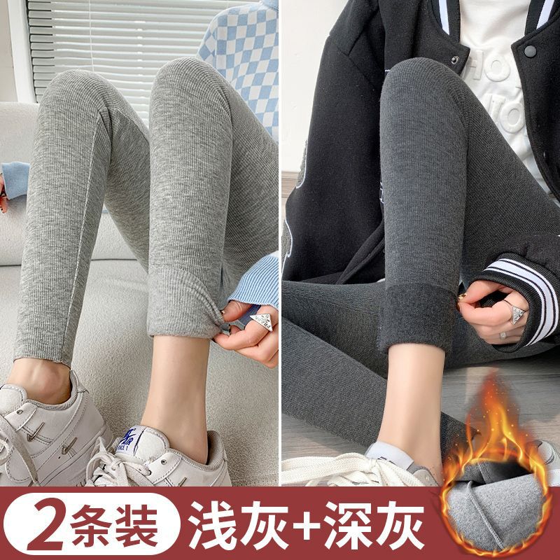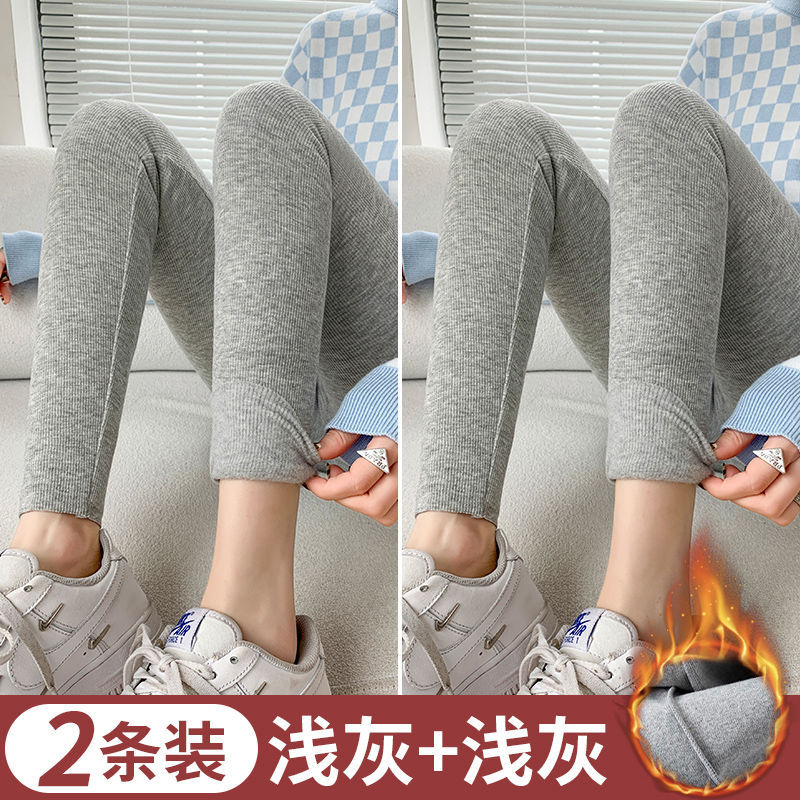 打底裤女外穿长裤秋冬新款磨毛薄绒灰色棉裤高腰加绒加厚内穿秋裤