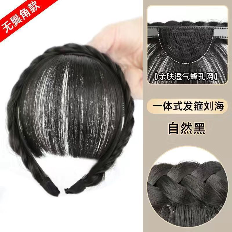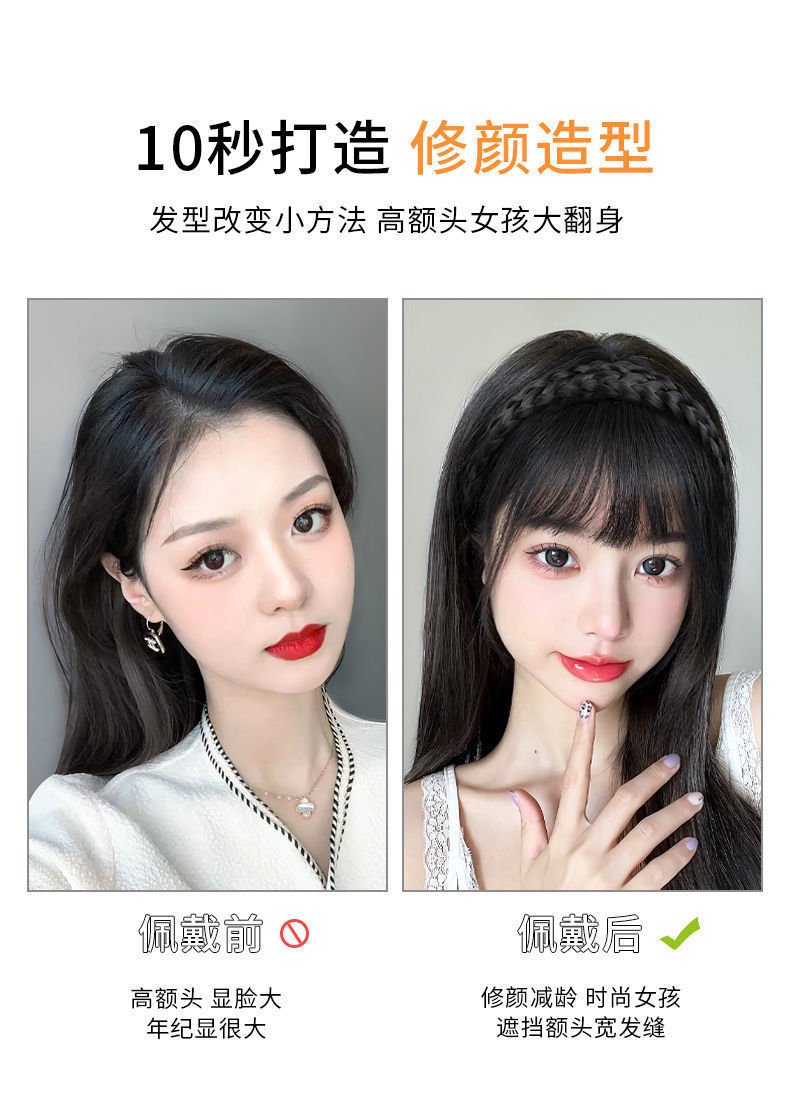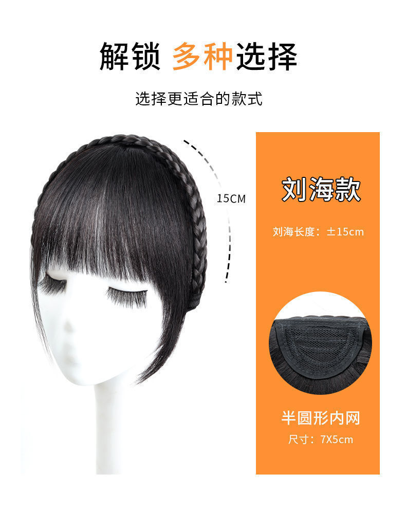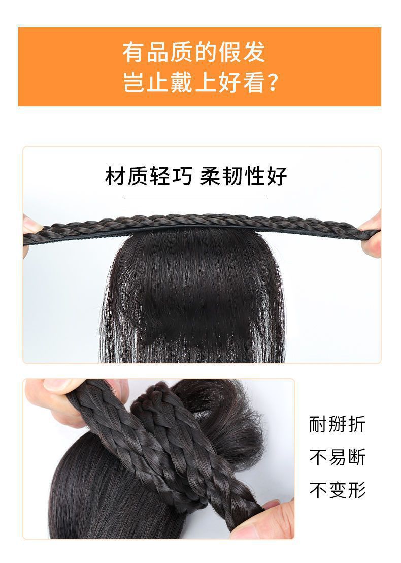 刘海假发女仿真发遮白发减龄防滑麻花辫一体式自然前额假发箍刘海