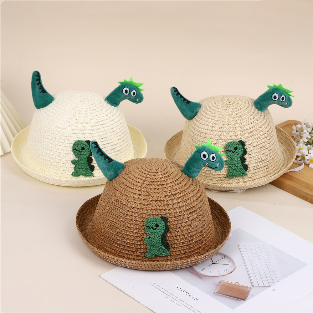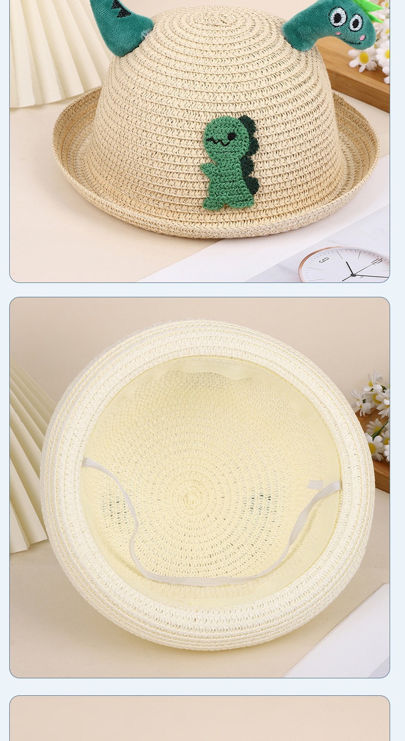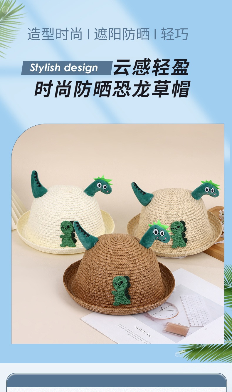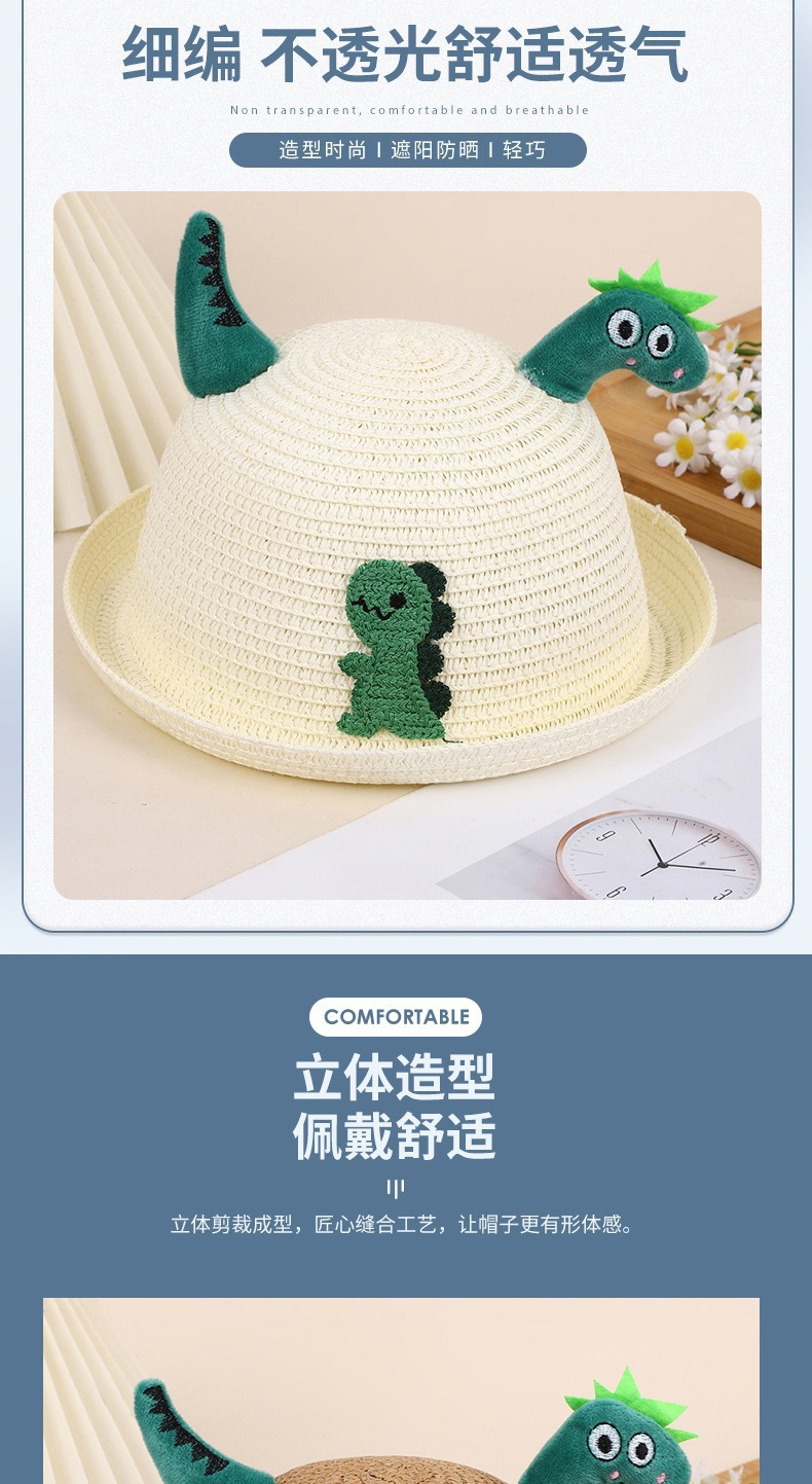 男女宝宝遮阳帽超萌可爱太阳帽儿童夏季弯檐帽卡通小怪兽透气草帽