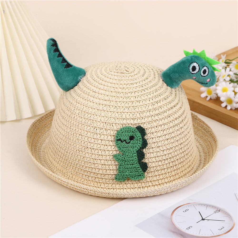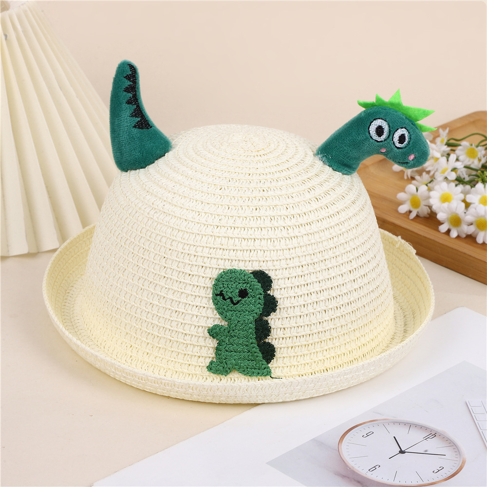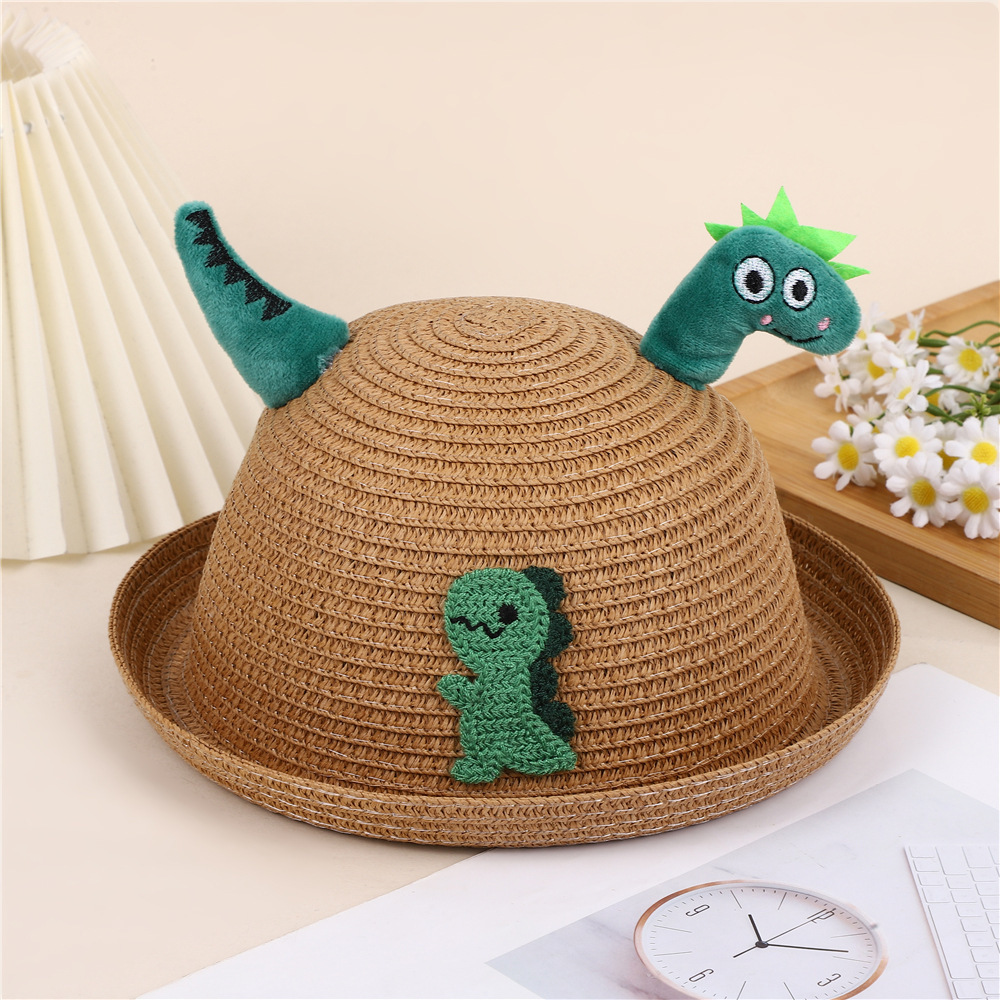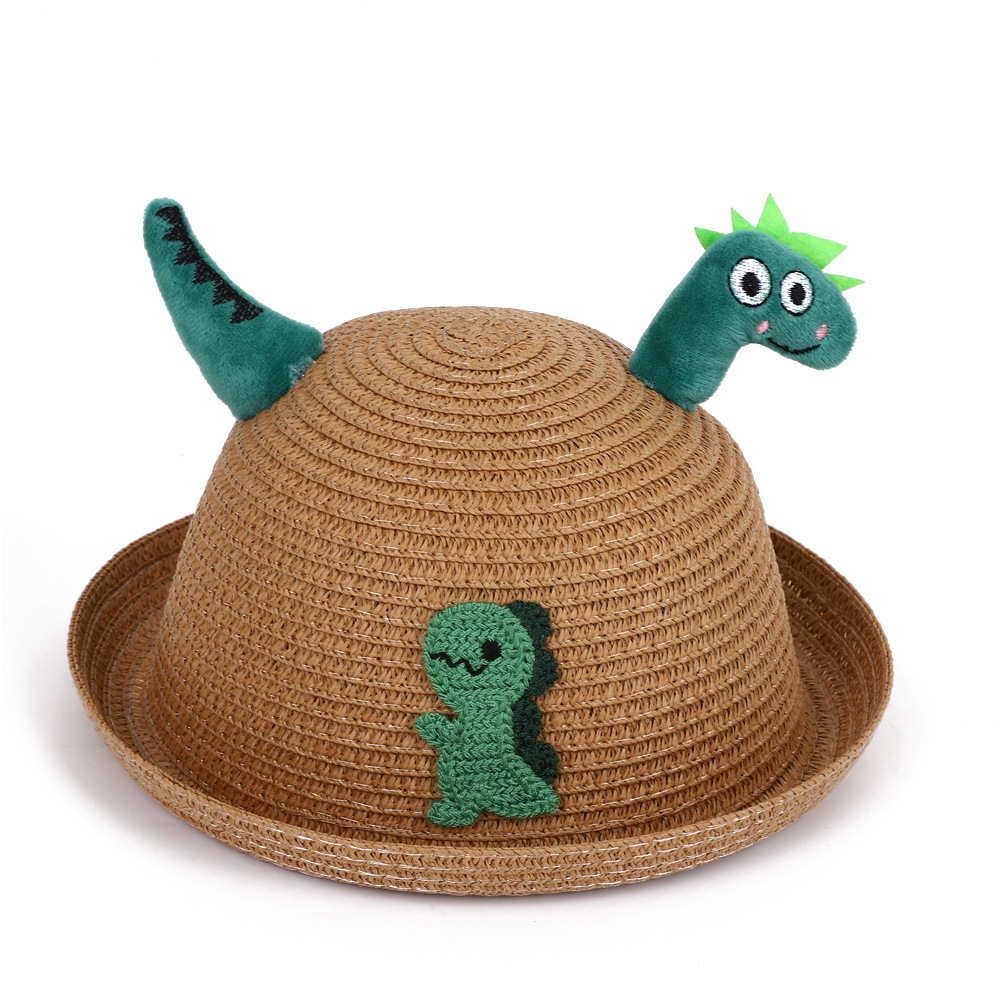 男女宝宝遮阳帽超萌可爱太阳帽儿童夏季弯檐帽卡通小怪兽透气草帽