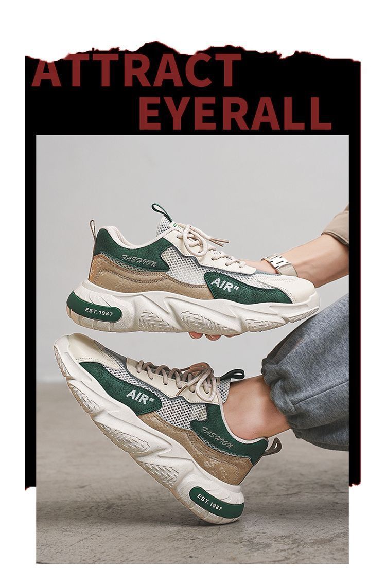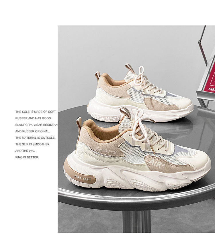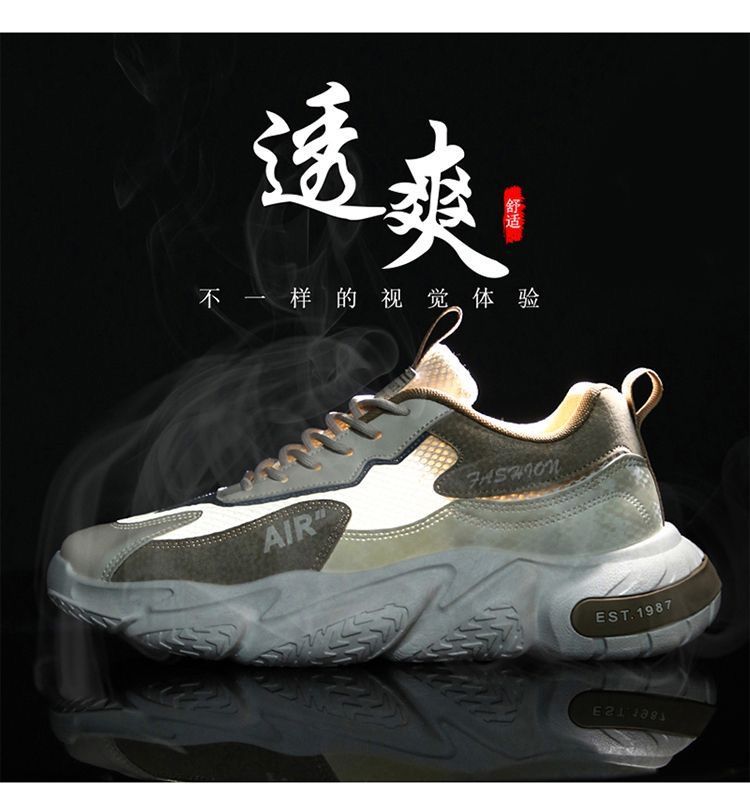 男鞋夏季2025新款网面镂空透气防臭百搭港风厚底老爹潮鞋子男