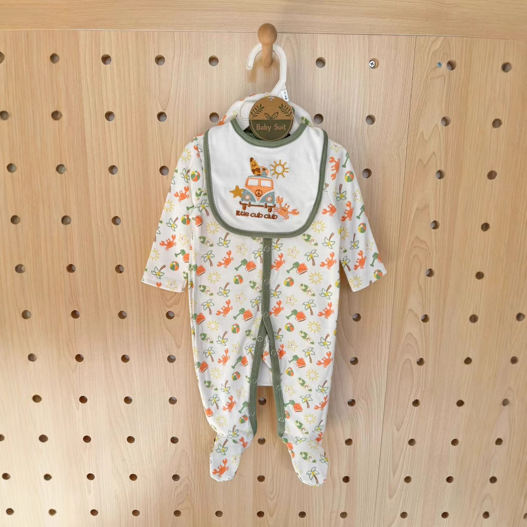 🔥🆕【新生儿长爬+哈衣套装3件套】