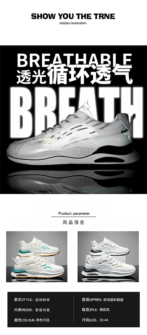 男鞋夏季透气2025新款青少年运动鞋网面跑步休闲小白厚底老爹潮鞋