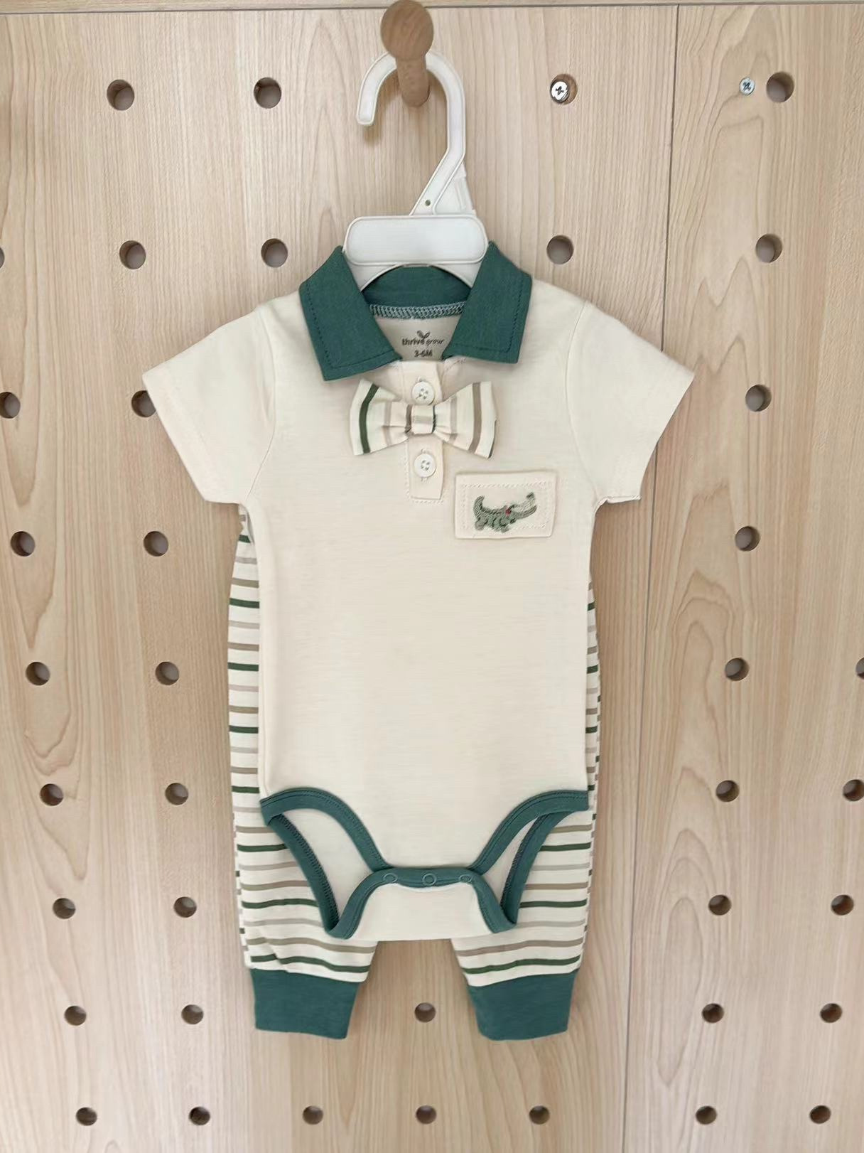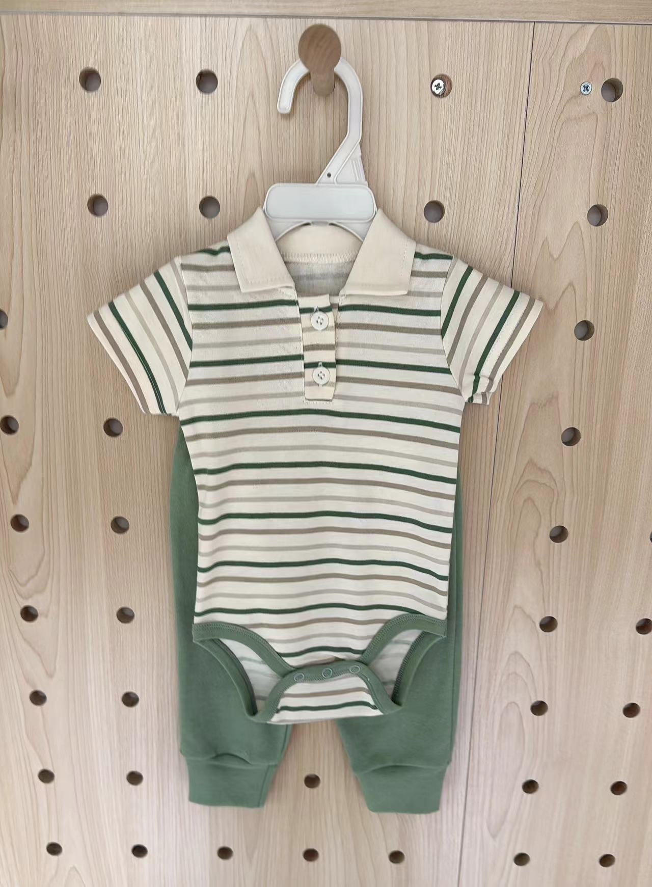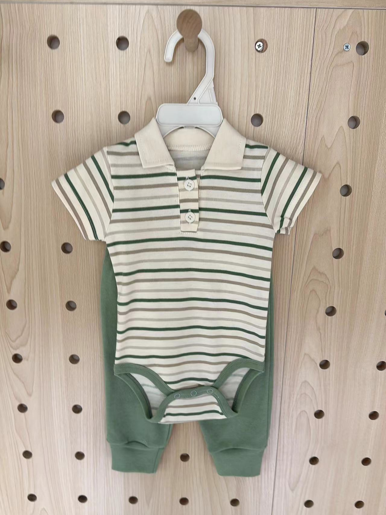 新生儿polo哈衣2件套带衣架romper 2pcs set hanger翻领短哈+裤子
