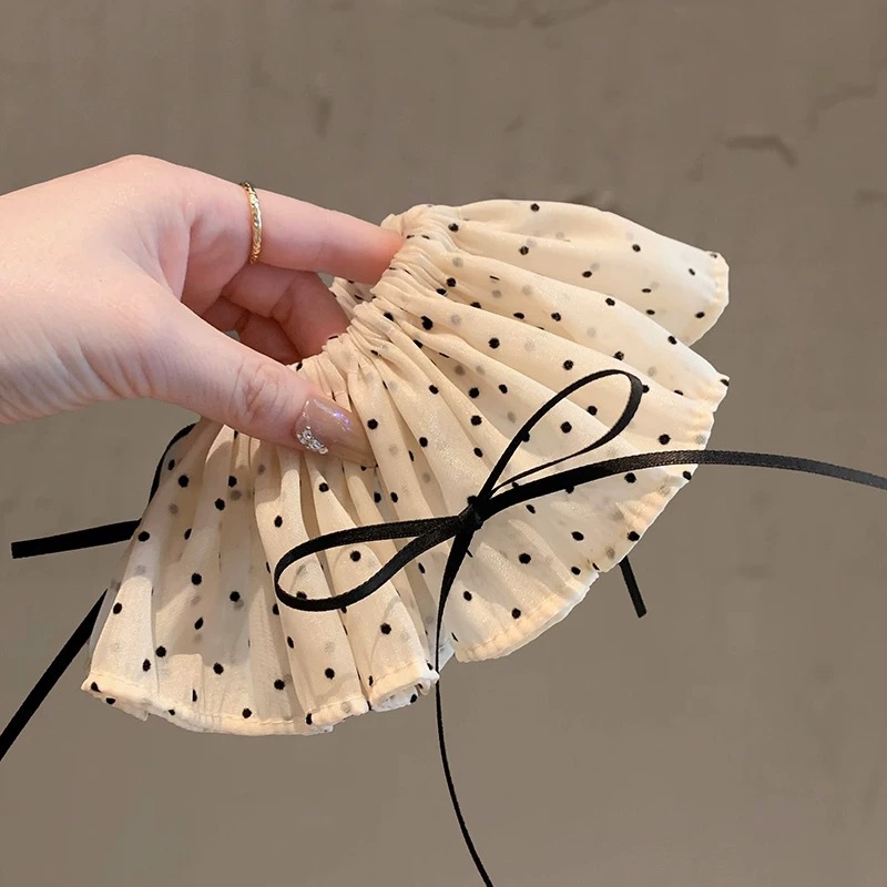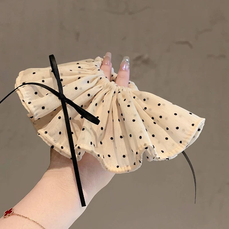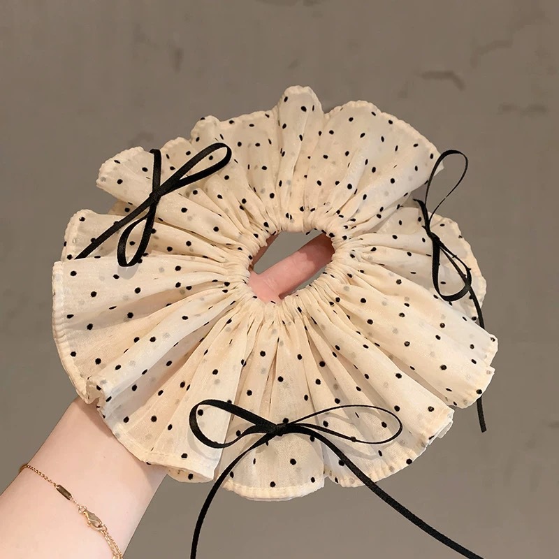法式复古小波点大肠发圈网纱蝴蝶结大肠圈发饰