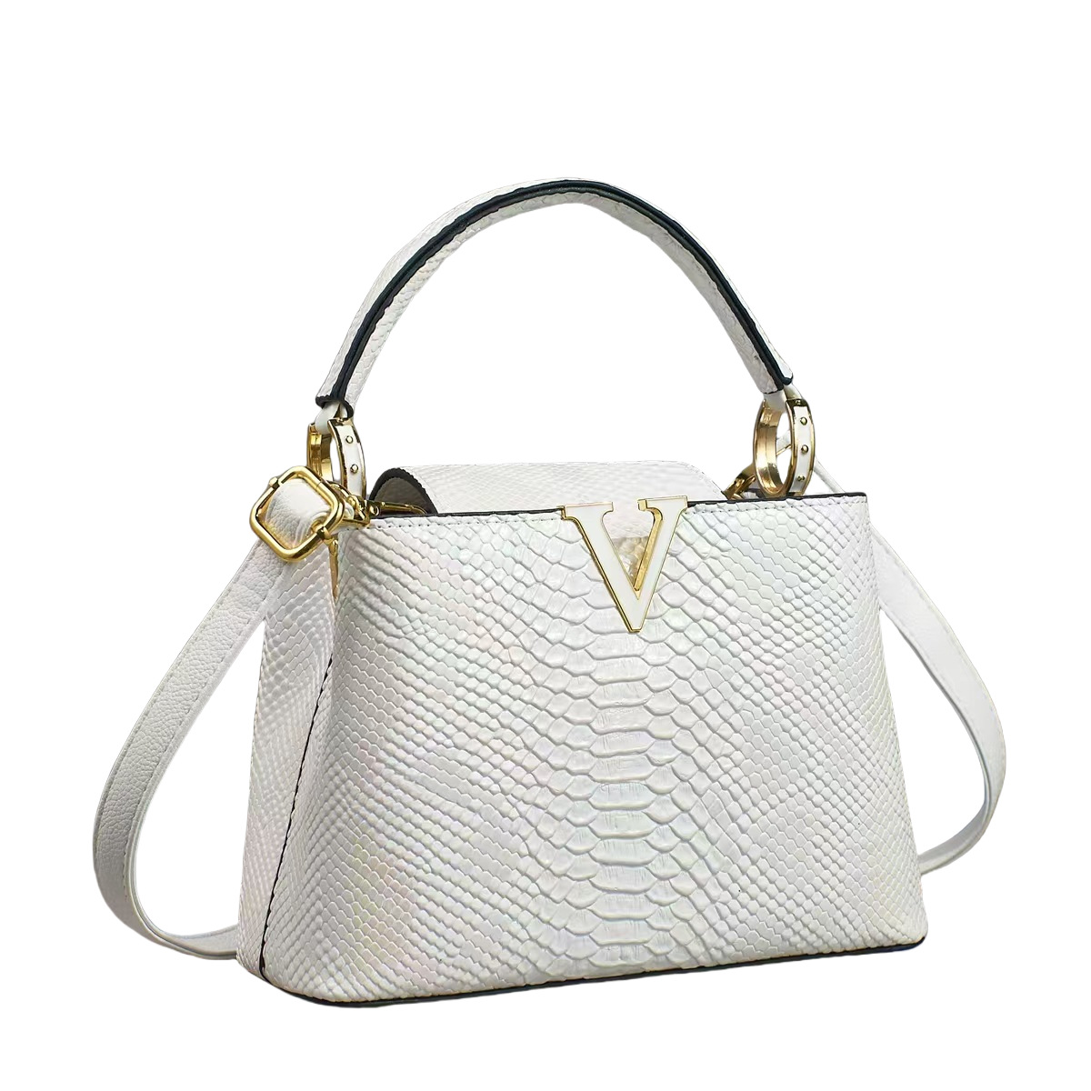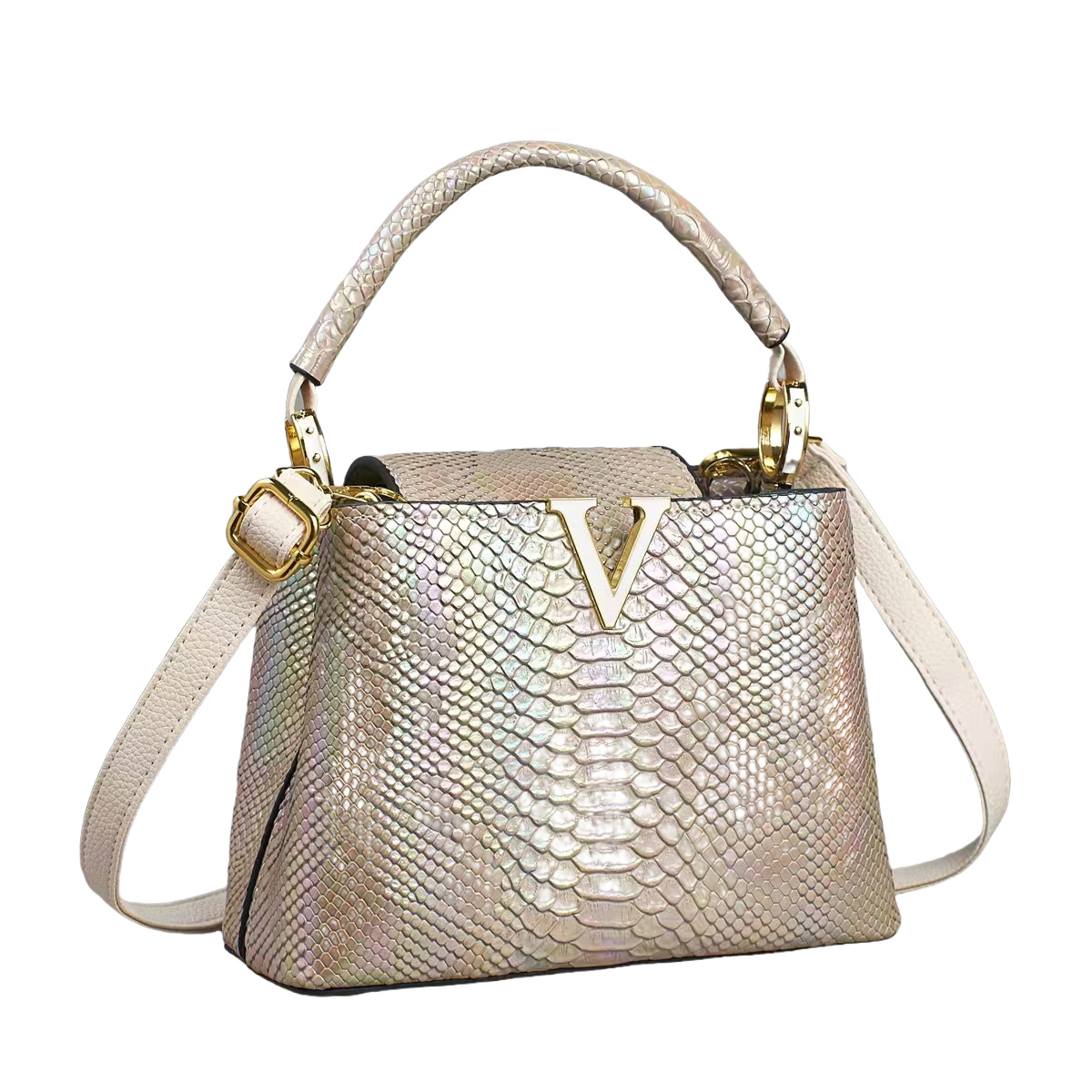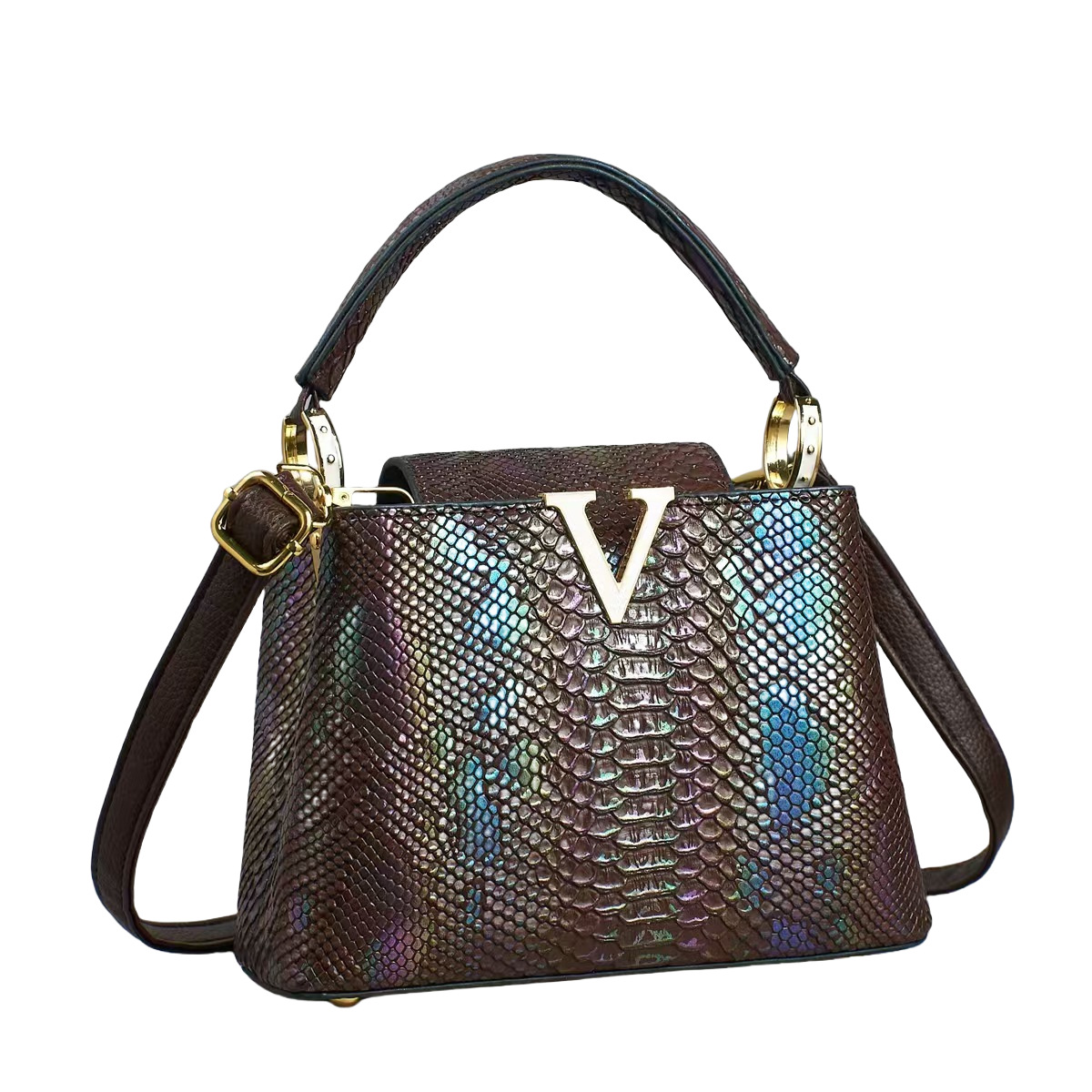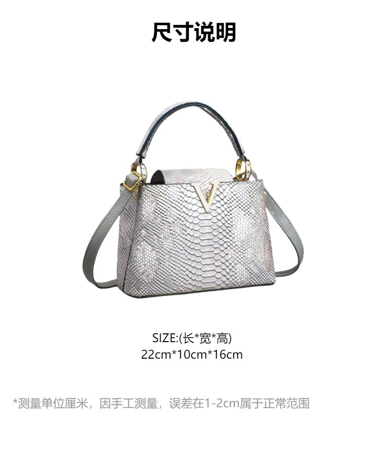 欧美风V字托特包新款2025彩色蛇纹手提包高级感单肩包复古斜挎包