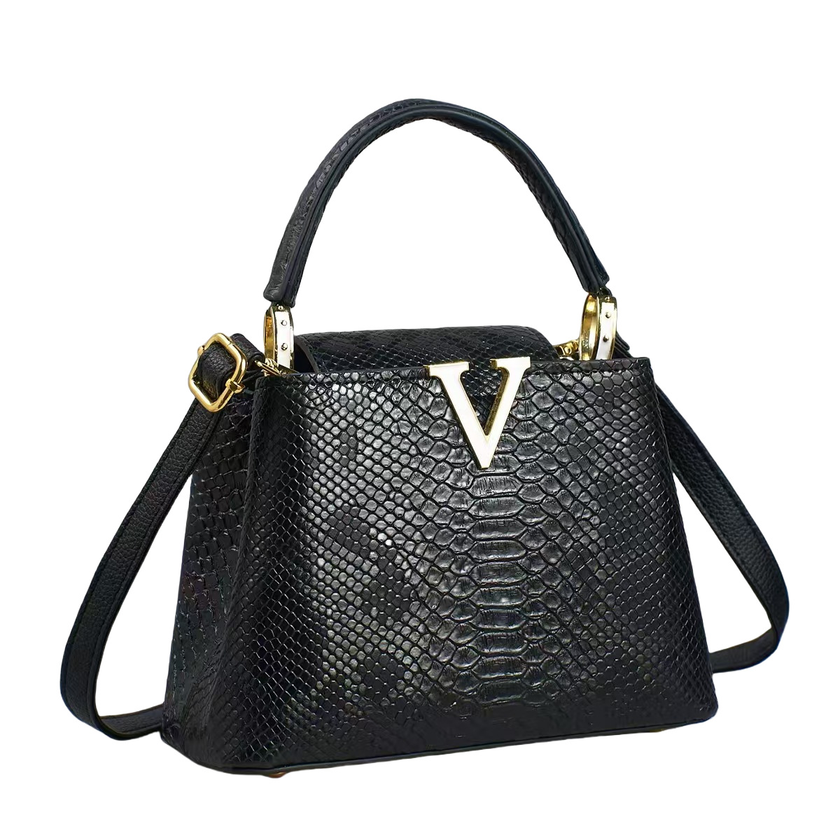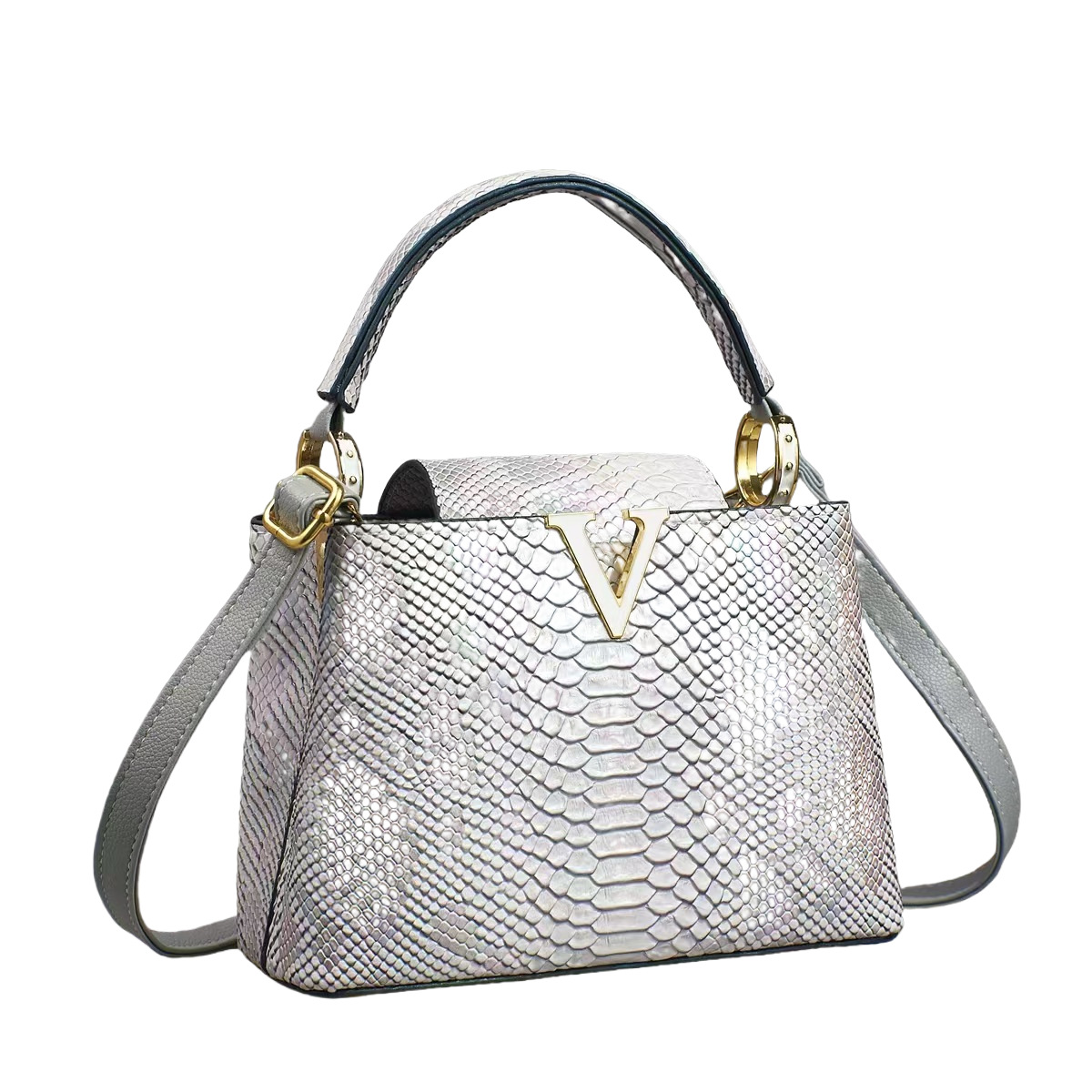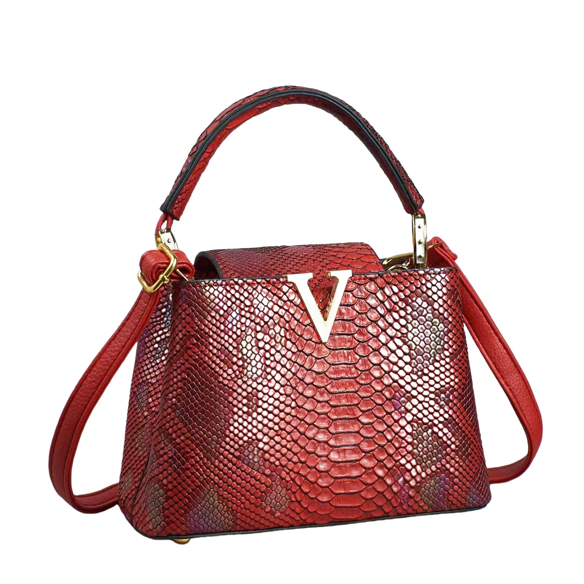 欧美风V字托特包新款2025彩色蛇纹手提包高级感单肩包复古斜挎包