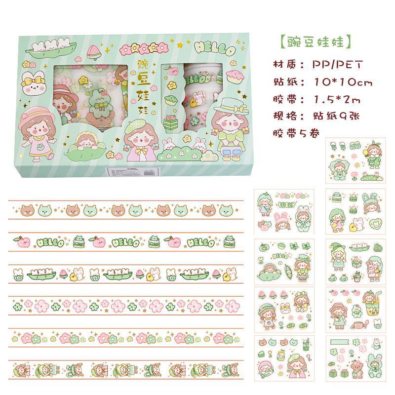 小麦青春和纸胶带 diy手帐贴纸套装礼盒卡通创意手帐贴画素材批发