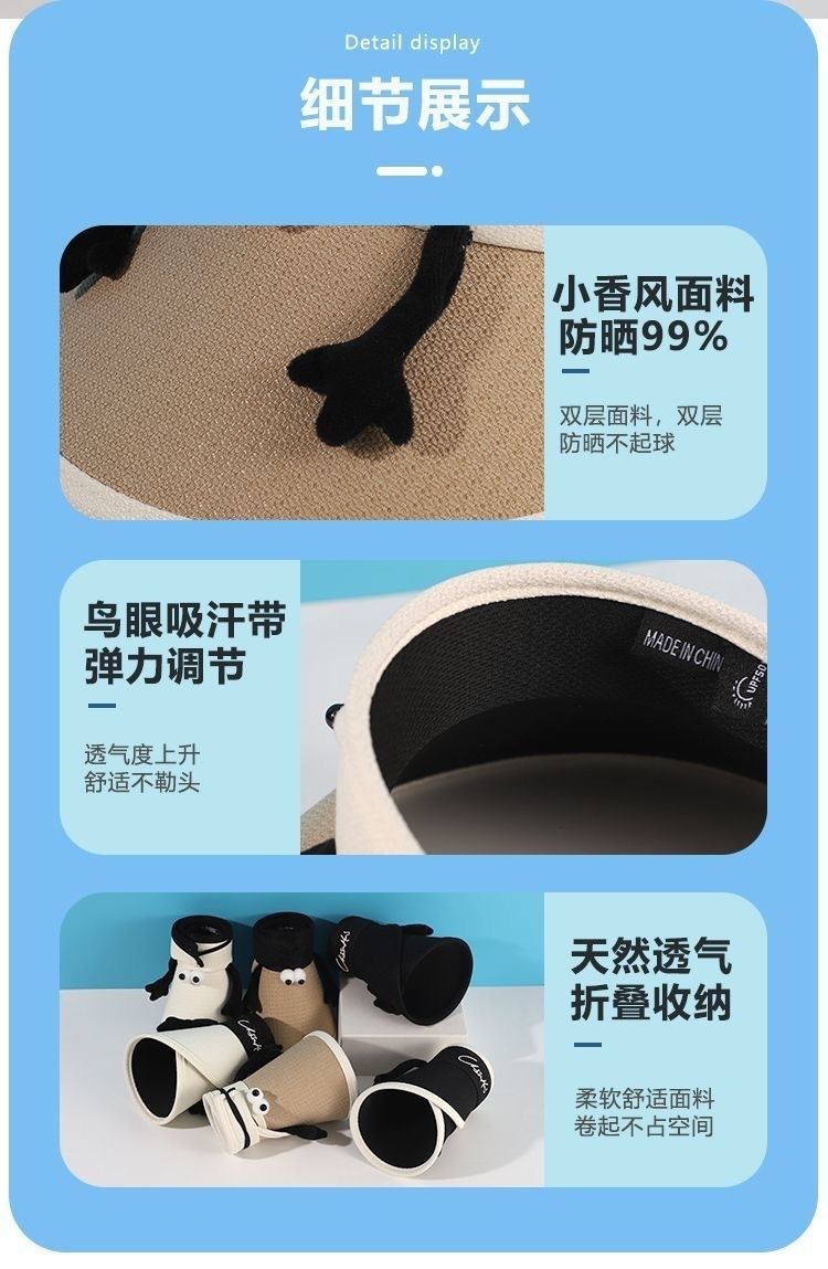 儿童遮阳帽宝宝防晒帽子夏季紫外线可爱帽户外女童太阳帽空顶