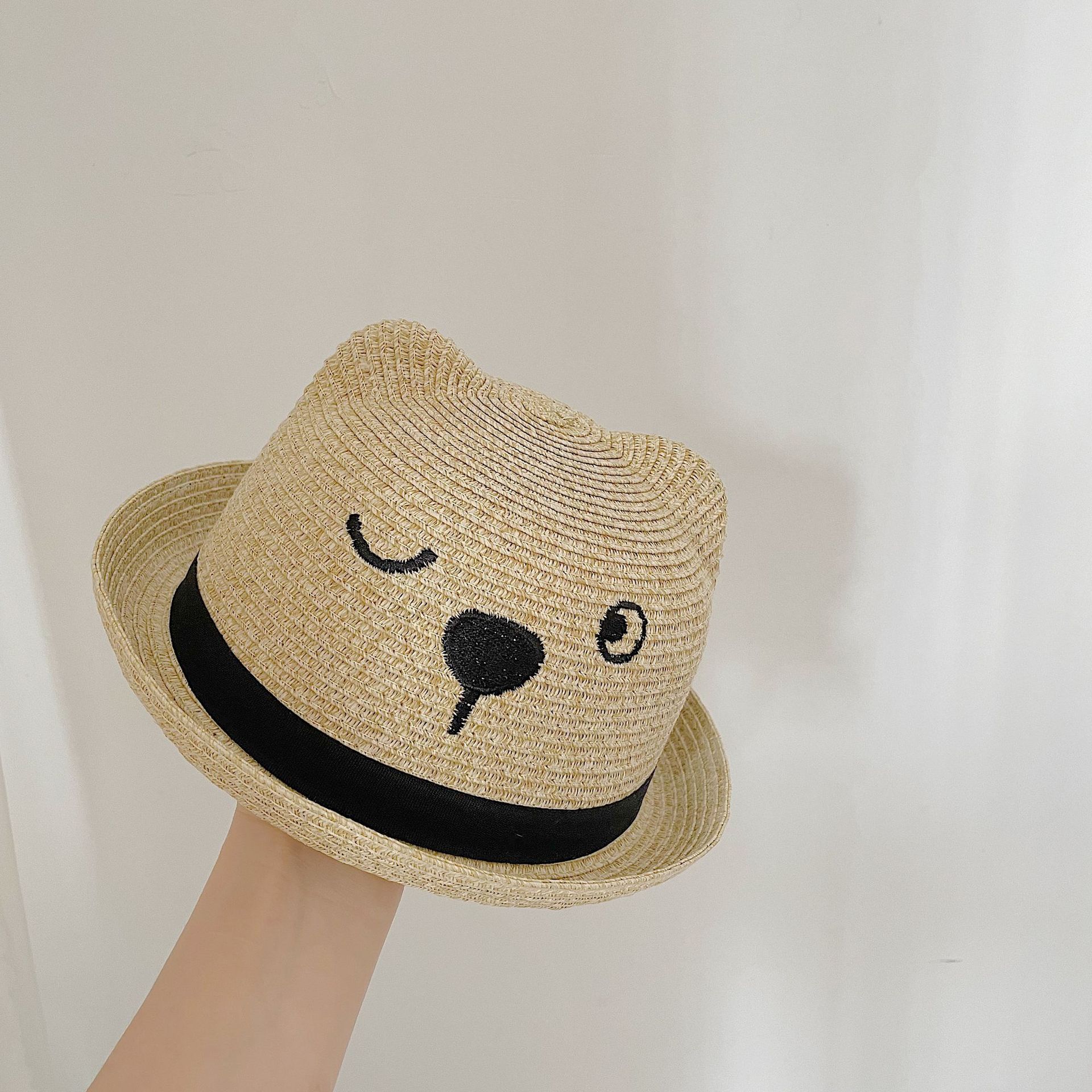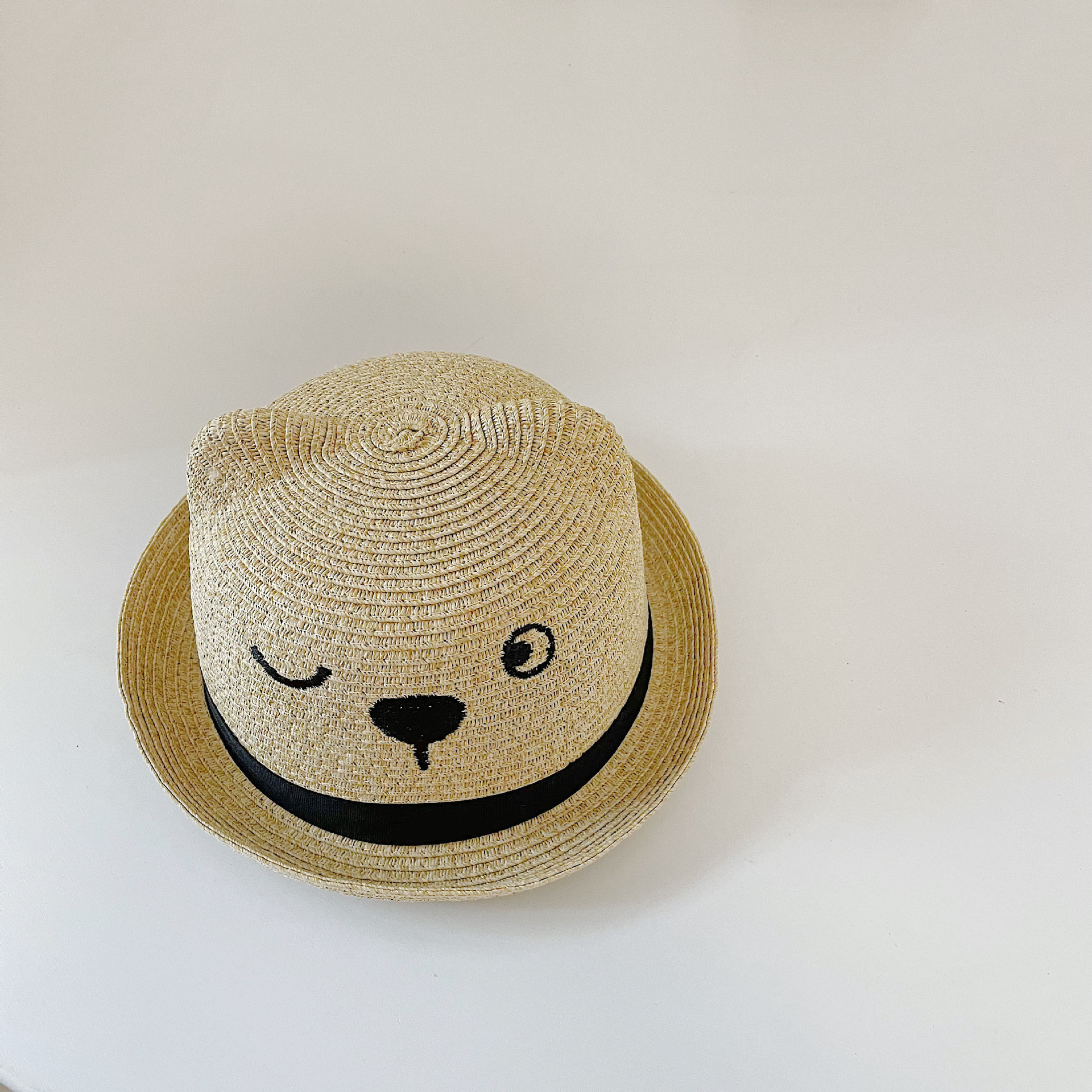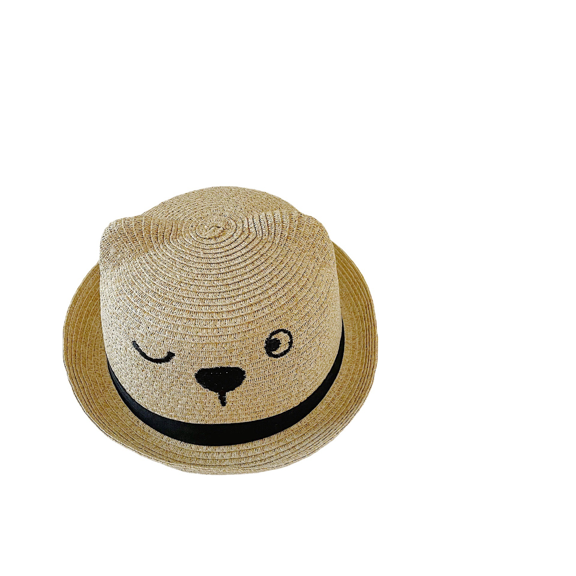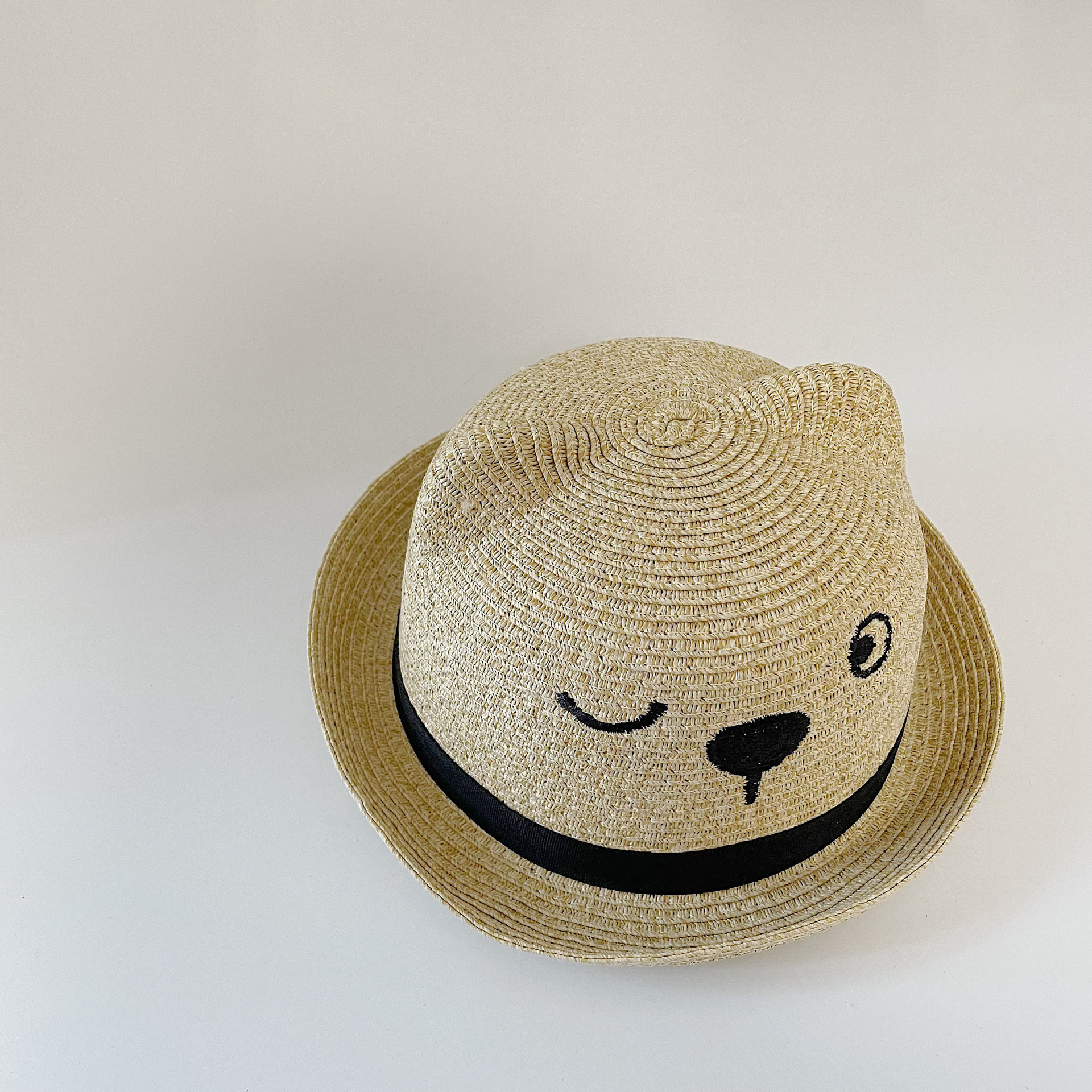 ins可爱宝宝圆顶草帽夏季婴儿出游拍照帽子儿童立体熊耳朵礼帽潮