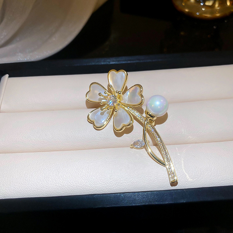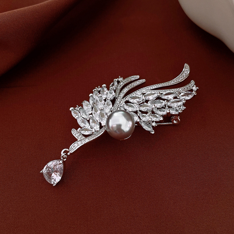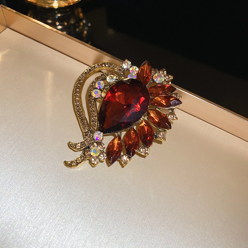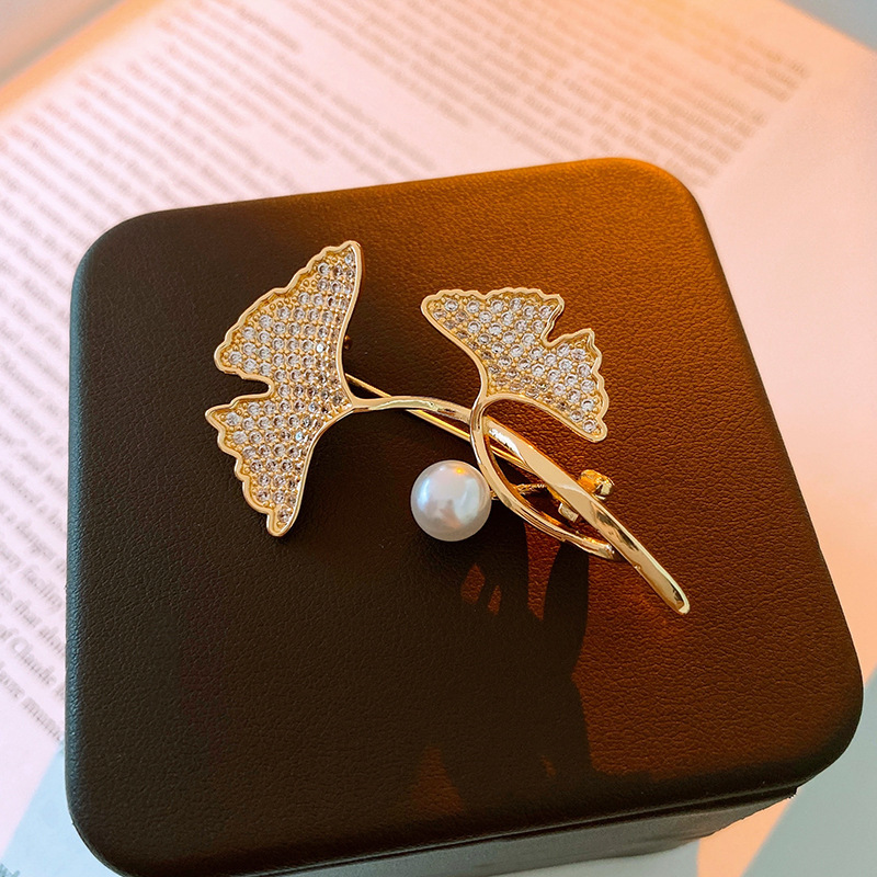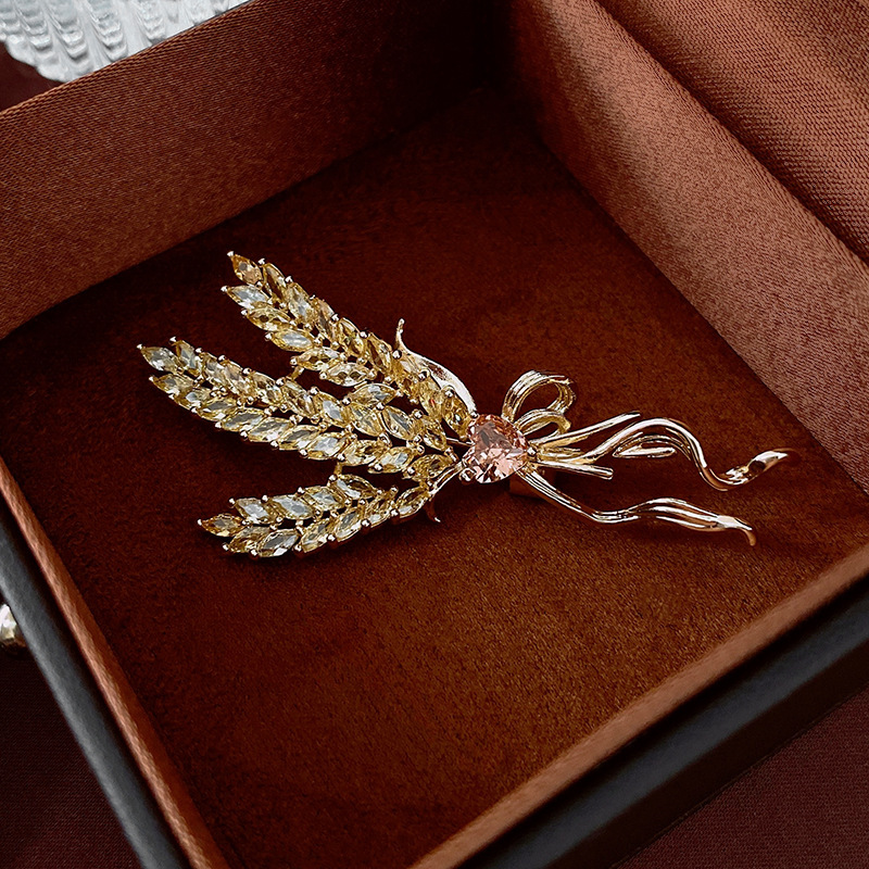 真金电镀镶钻字母胸针法式轻奢感胸花压襟中古时尚饰品批发女