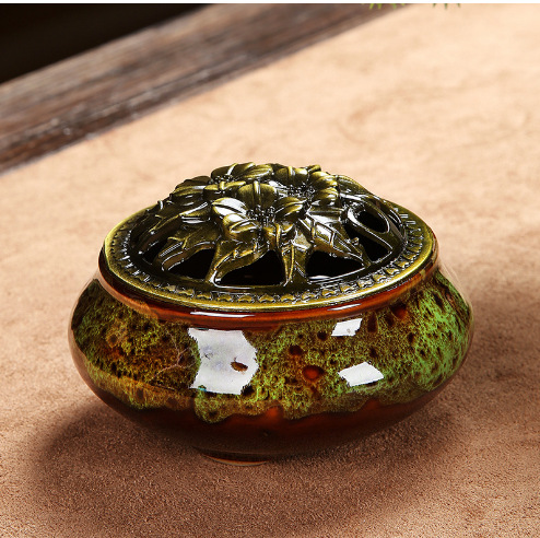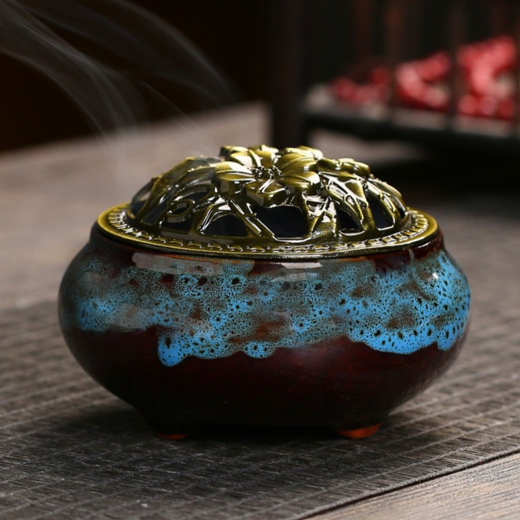 香炉陶瓷批发插香炉家用室内檀香炉摆件创意义乌窑变盘香冰裂香炉