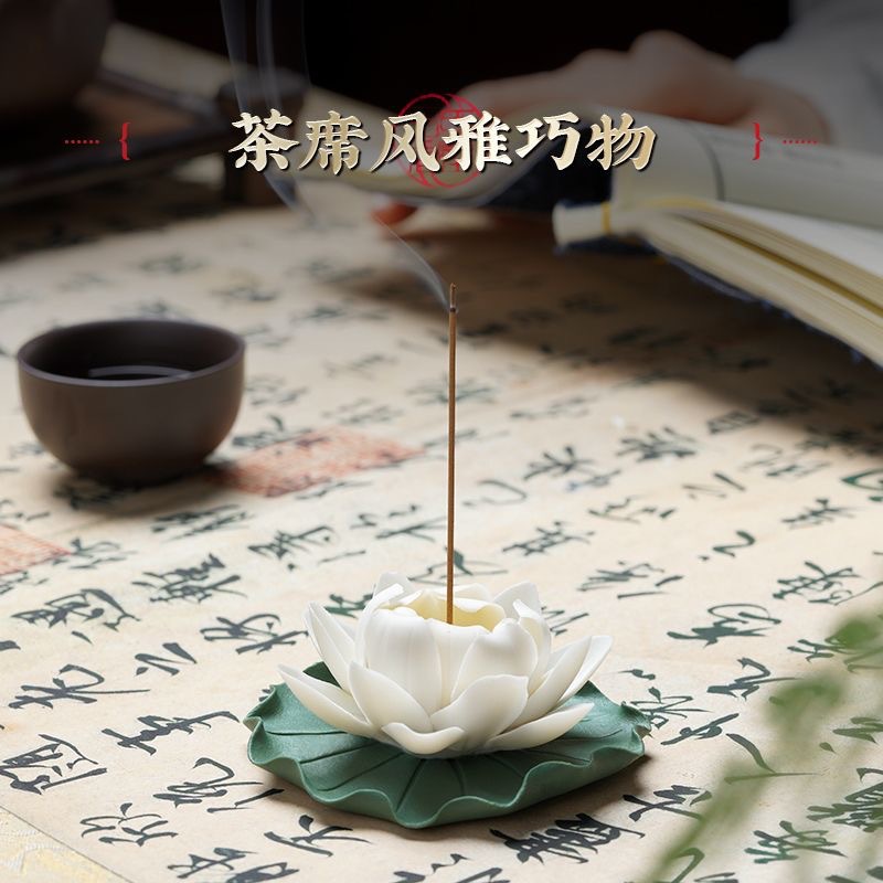香炉家用室内香插手工莲花香座线香底座点香插香座香薰炉茶道香托