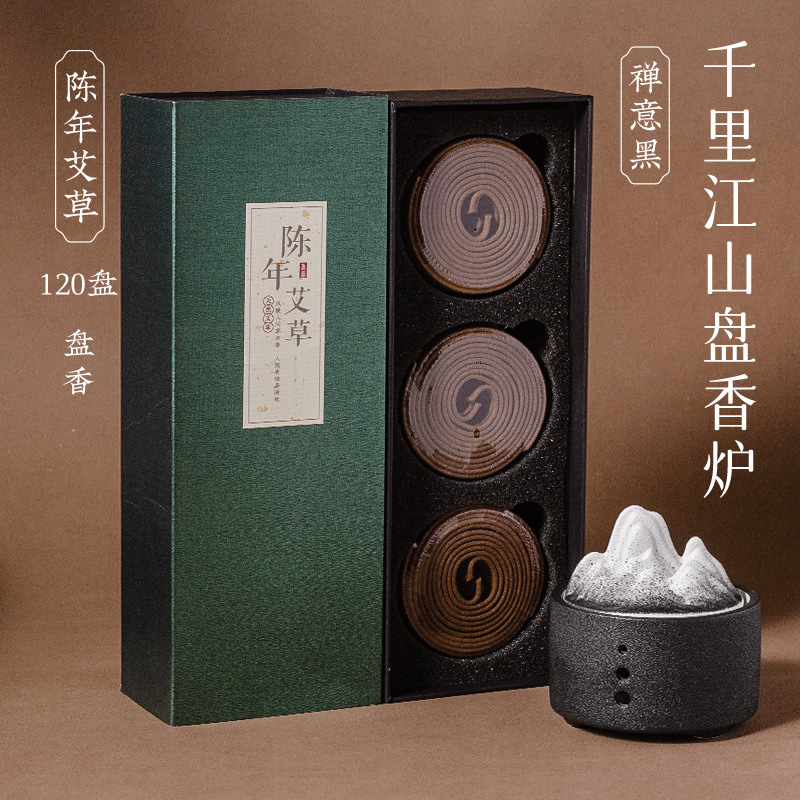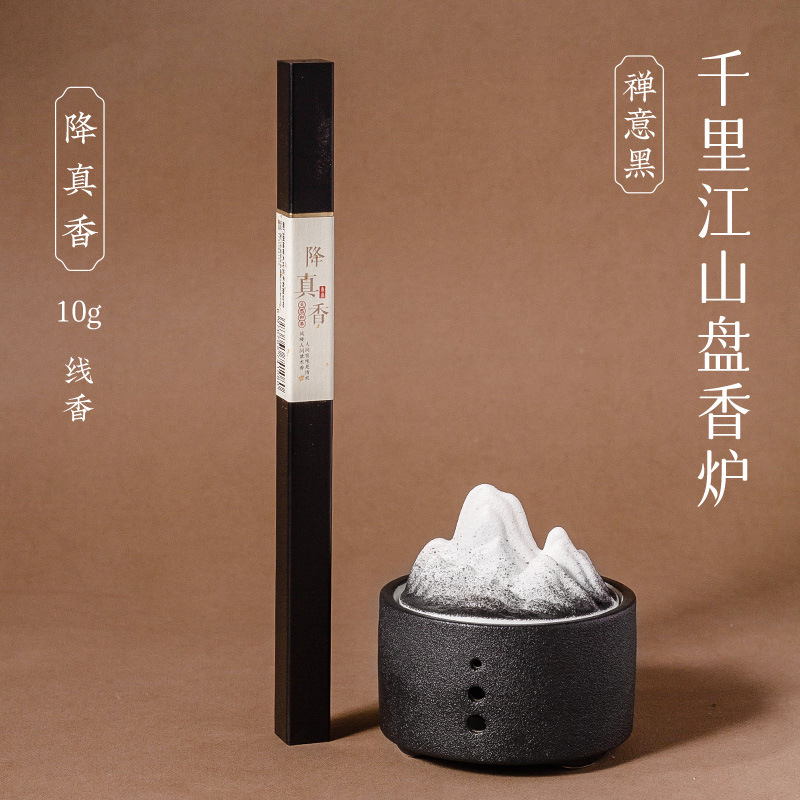 千里江山陶瓷盘香炉线香插家用茶室禅意檀香沉香盘香薰炉摆件室内